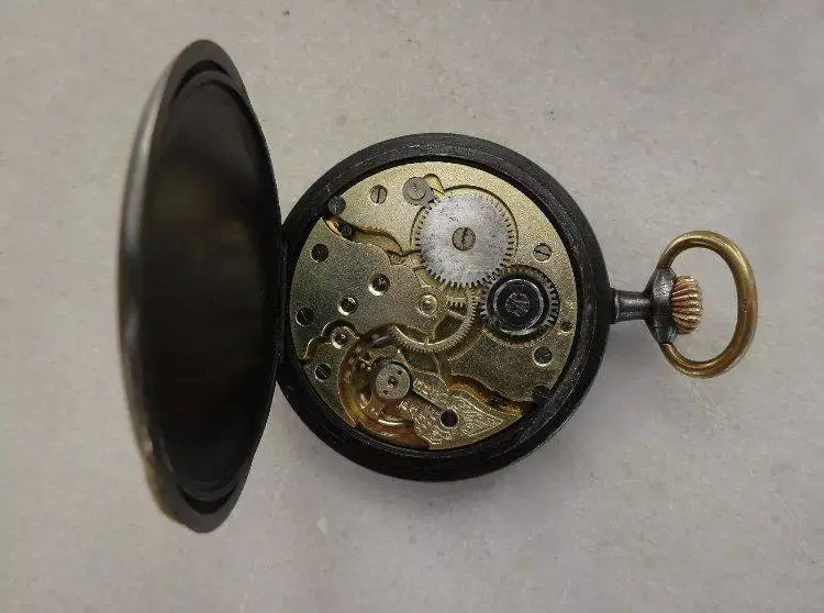 La complicación de 24h no es que sea muy extraña ni muy "complicada", lo más curioso evidentemente es el uso que se le daba (trabajar en una mina), navegación por el Ártico (no es el caso de tu reloj), mediciones astronómicas... es decir en situaciones o regiones horarias donde no fuese fácil distinguir el día de la noche. Las imágenes no permiten ver si el calibre lleva algún sello o marca. La caja parece del tipo "Gun metal" es decir es posible que sea de acero que ha pasado anteriormente un proceso de corrosión que le da cierta resistencia extra. Por el estilo de reloj y calibre yo lo situaría entre 1900-1920. Siento no poder ayudar más.