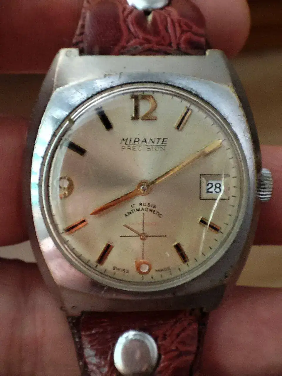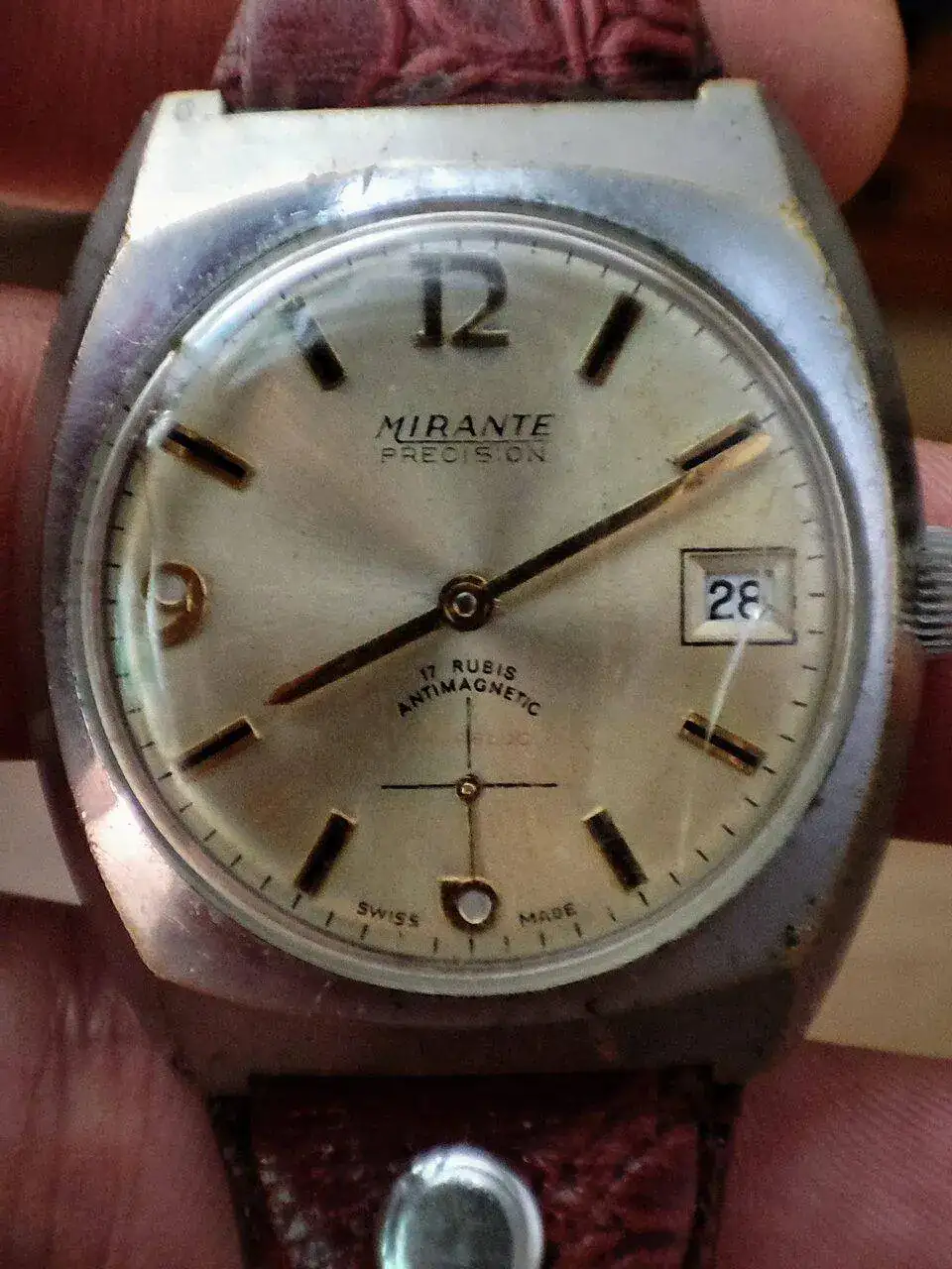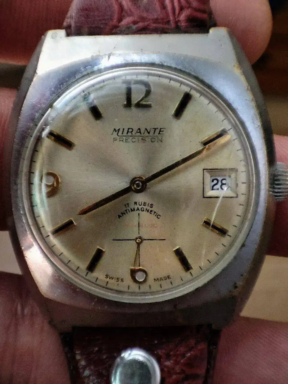 Como veis en la foto, en el dial pone Mirante Precision, 17 rubís, Antimagnetic, Incabloc (creo), Swiss Made.