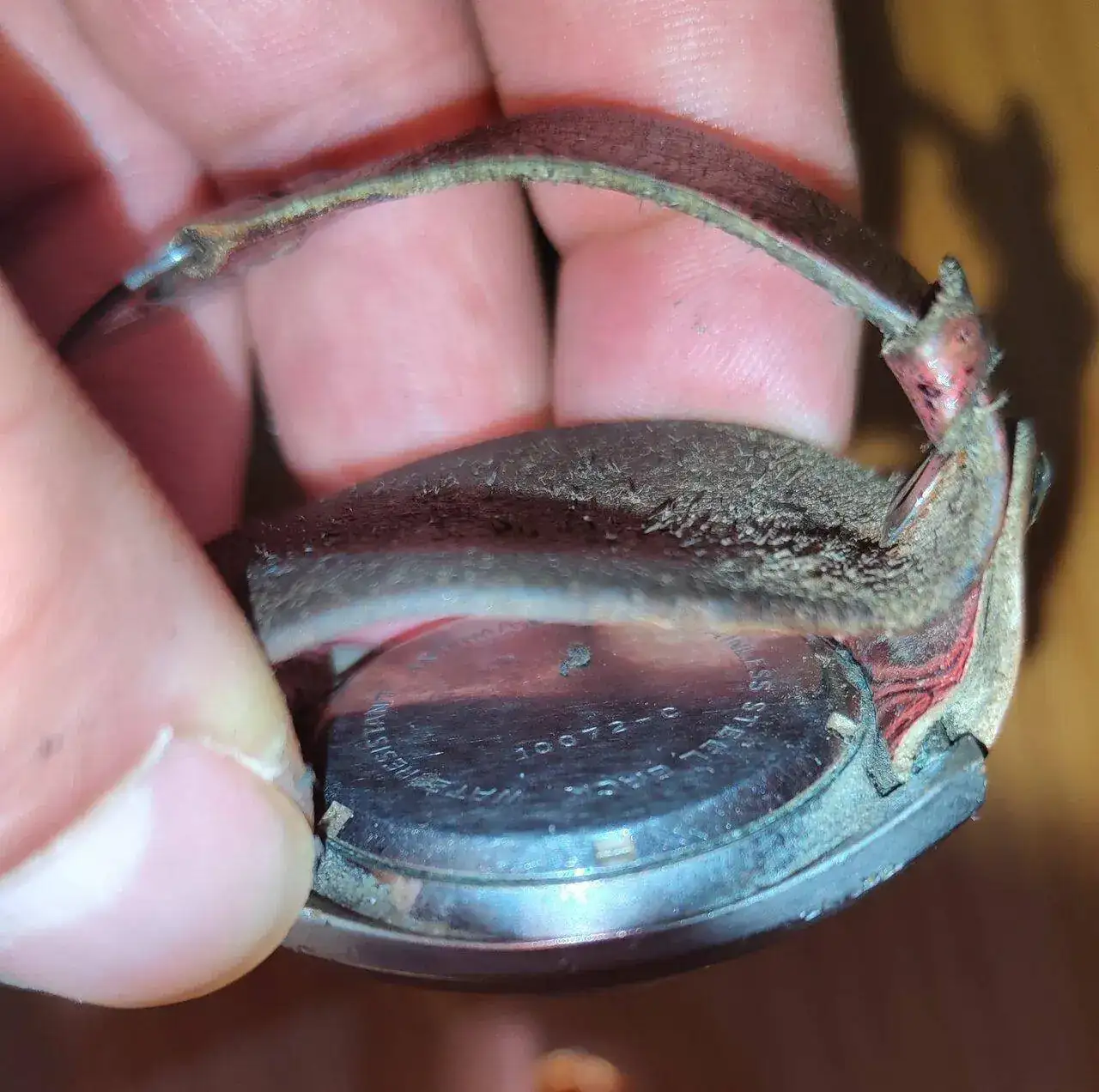 Adjunto un par de fotos. La de atrás se verá algo mal porque la correa está delicada y no quiero romperla.