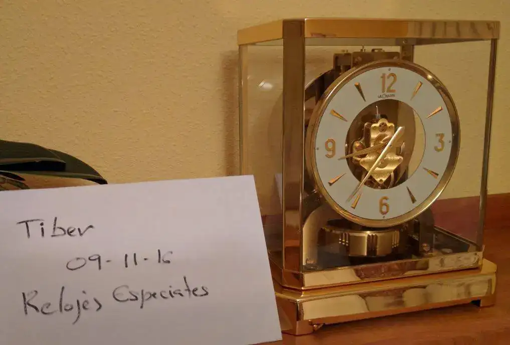 Reloj Atmos modelo 528-6, en perfecto estado (tanto estético, como de funcionamiento). Su nº de serie es 176408, lo que permite datarlo en torno a 1960. Le realicé una revisión completa en Llamazares-Gil (que garantiza la misma), tanto de la maquinaria como de la estructura acristalada.