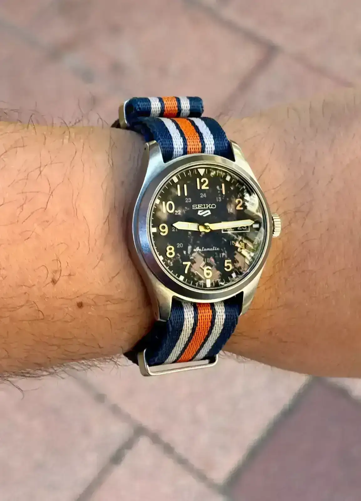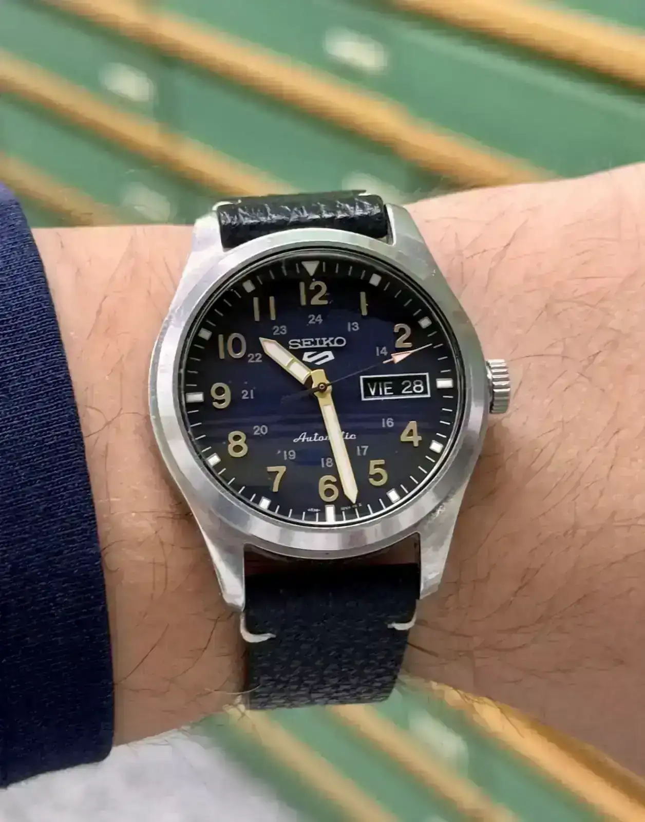 El Seiko 5 es siempre un acierto, aunque ya no estaría en el terreno de aviación sino en el de Field Watch (reloj militar de propósito general) si bien esa estética concreta con doble numeración tiene su origen en relojes norteamericanos de aviación.