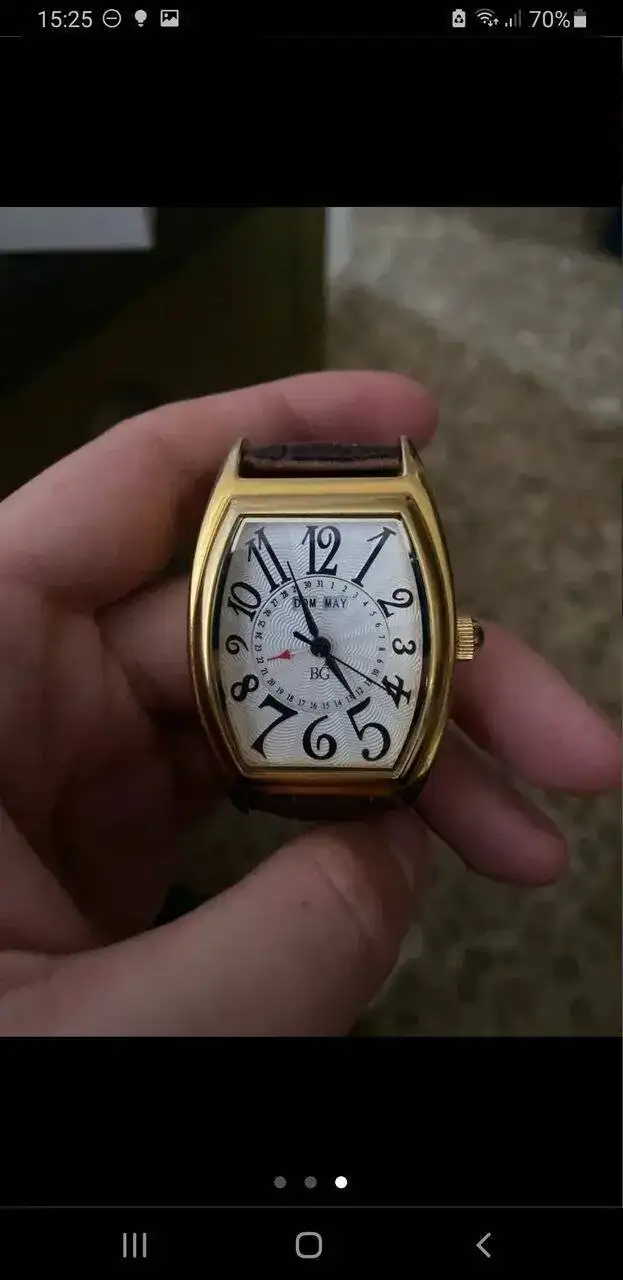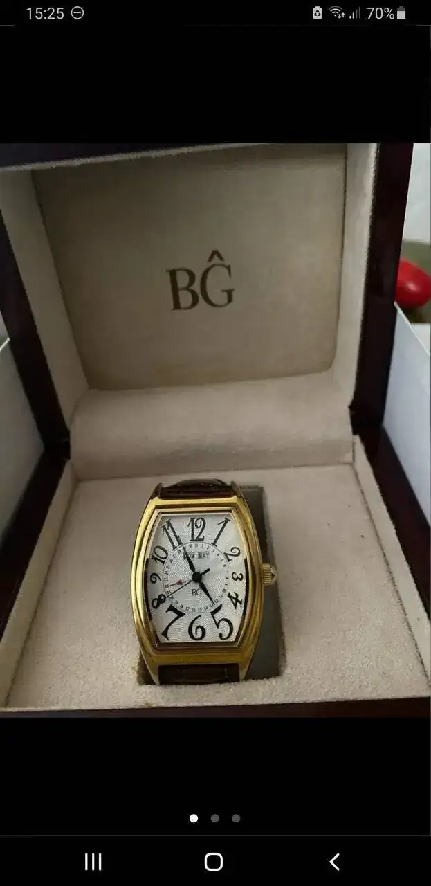 Hola buenos dias he estado viendo el foro y veo quw mucha gente de aqui sabw mucho de relojes y queria preguntaros unas cosa hace un tiempo e visto este reloj en wallapop y a sido un reloj que me a gustado bastante pero cuando busque por internet no encontre ninguno ni ningun dato sobre el solo se que es un BG alguien sabe algo mas sobre este?
