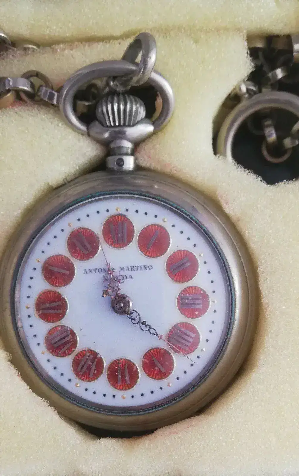 Es un reloj familiar, del abuelo de mi cuñado y del que me gustaria saber algo mas. Está en buen estado y el funcionamiento es extraño porque al darle cuerda, las manecillas giran a un ritmo rapido y perdiendo velocidad a los pocos minutos, llegando a deternerse.