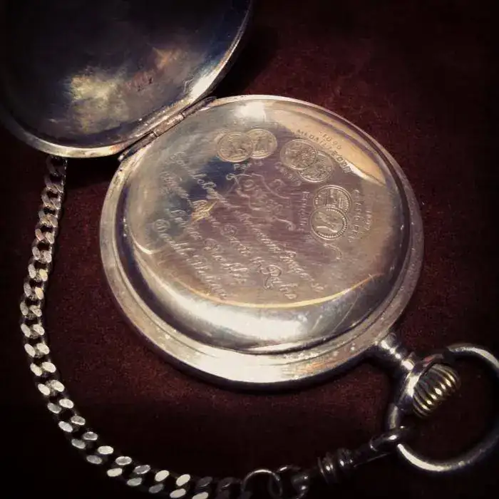 Vendo reloj de bolsillo Omega con leontina de plata.