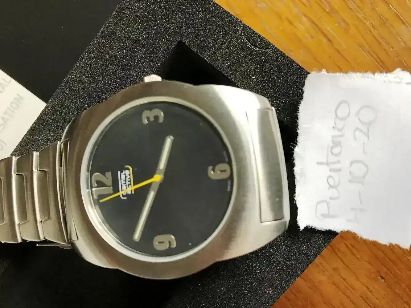 Paseando por ahi encontre una joyeria en liquidacion y vi este reloj y pense en mi hermano que esta en residencia... asi que zas... se lo compre.. Cuando he ido a darselo me dice que no le gustaba que preferia el que yo llevaba puesto (asi que se lo dí).
