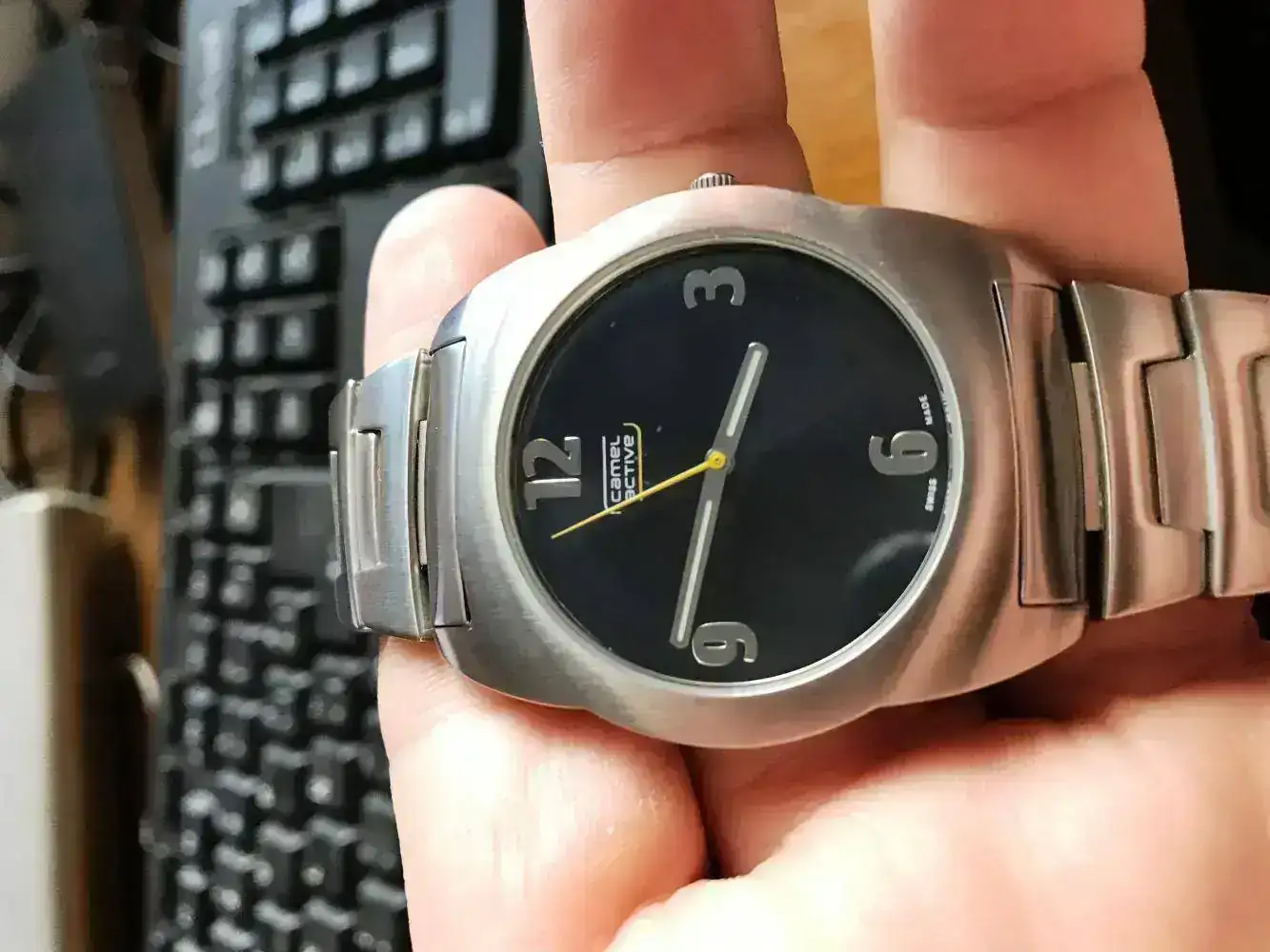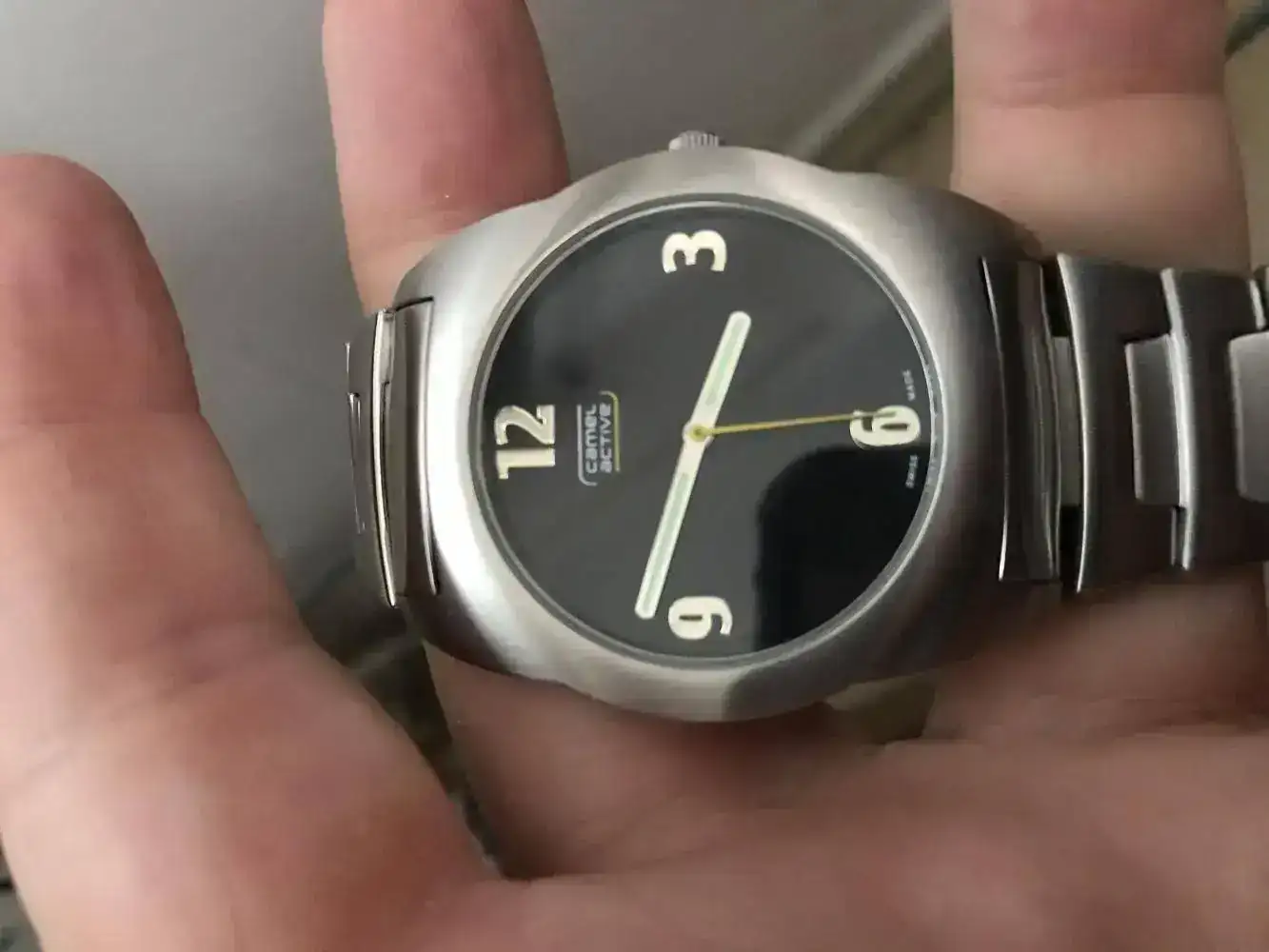 Se trata de un reloj Camel Active, producción posterior a Camel. El reloj fue comprado el dia 29 de septiembre y tiene garantia sellada, caja y docuementación, y ni se le ha ajustado el armis. Esta a estrenar, pero señalo tiene algun pelo en la tapa trasera del reloj de estar en la joyeria. Sus dimensiones son 40*47mm, y para que salga rapido lo pondre a un precio muy bajo, mucho menos del que yo pague. Seria 50 euros, envio a parte