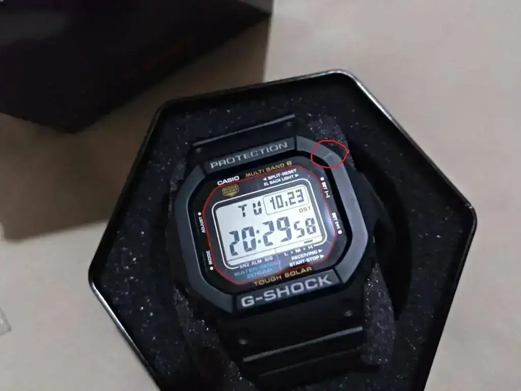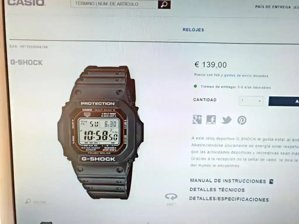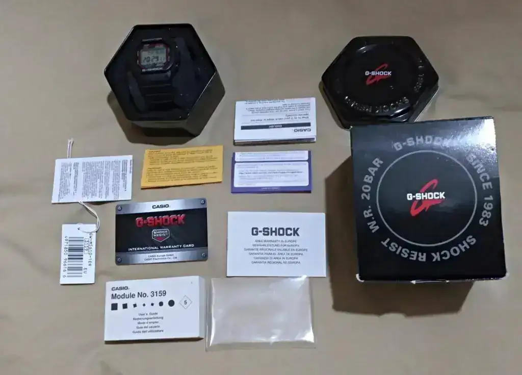 Muy poco uso como podéis ver, tan solo marcas en la hebilla pulida, algún arañazo en la tapa trasera y una linea en la resina de la caja (que ni me he preocupado en pulir, pero vaya es cosa de nada y totalmente pulible ya que es resina) con todas sus etiquetas, manuales, etc, como nuevo, es el modelo GW-M5610-1ER, trae mil funciones, luz, indicador de baja carga, temporizador, 5 alarmas, chrono, se pone en hora automáticamente por radio frecuencia, solar y sin pilas, sumergible 200 mt, cristal hardlex, temporizador, garantía nacional sin fechar, 44 mm.