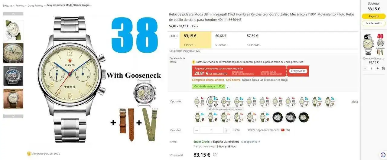Reloj chino 1963 a 81€ en Aliexpress