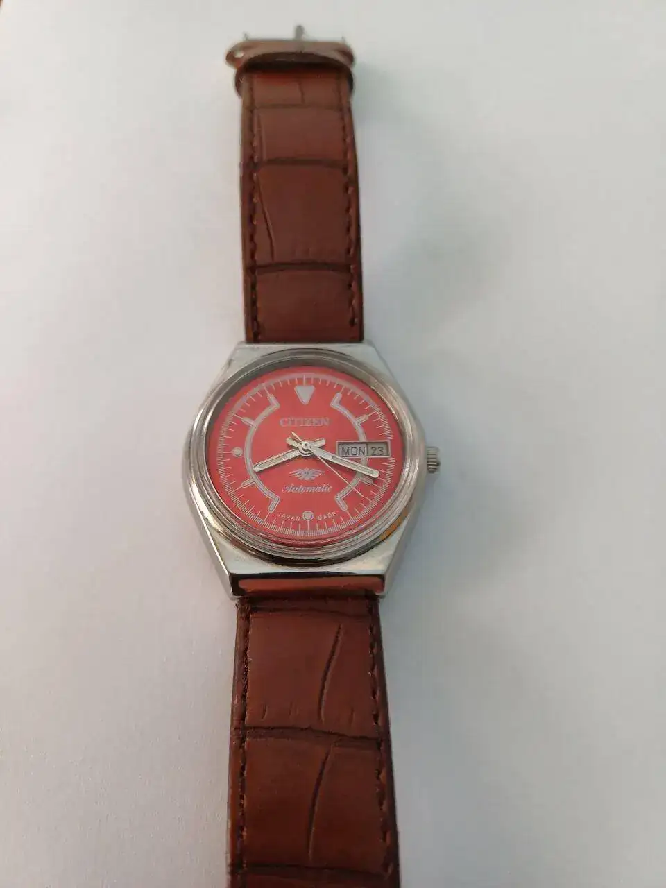 Ese reloj es el Citizen 8200 (calibre automático 8200) conocido como "aguila 7" o "seven eagle" por el emblema que lleva en el dial. Con ese nombre encontrarás unas cuantas referencias y vídeos en internet, entre ellas un hilo de este foro: