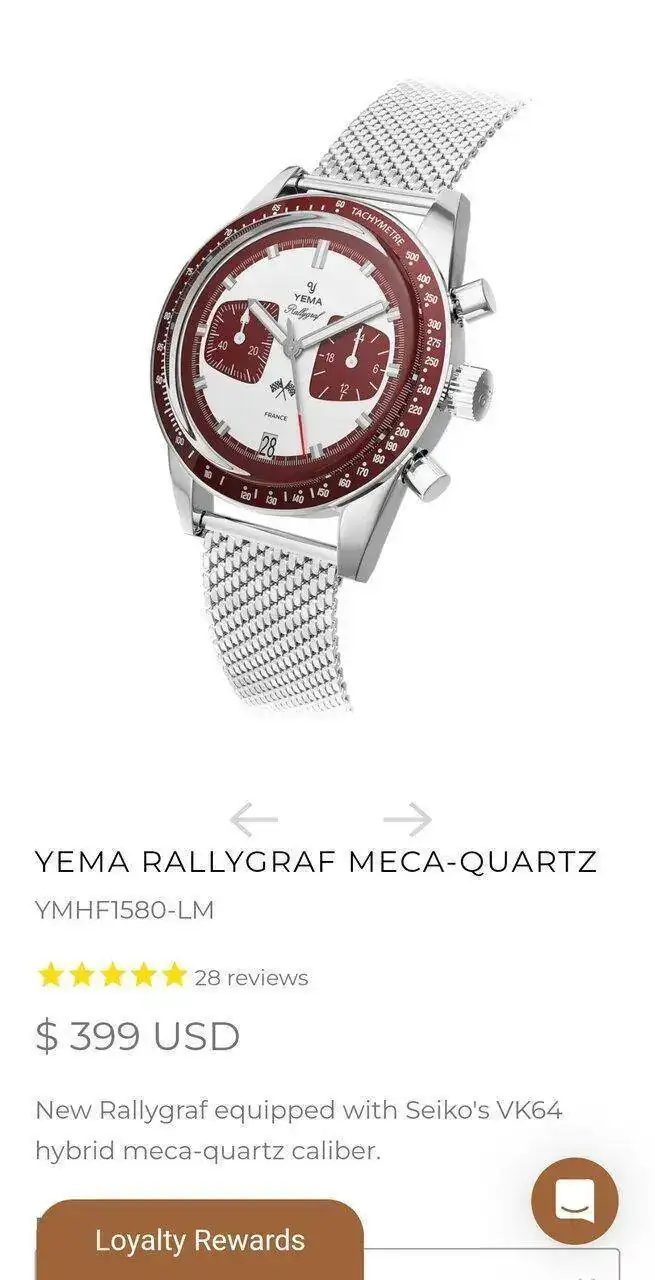 Y otro, que no se cierne 100% a lo que busco en este caso concreto pero que también me ha rondado de hace tiempo por querer un chrono asequible y pequeño, es el Yema Rallygraf.