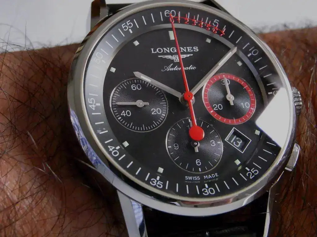 Hola, vendo este cronógrafo Longines con movimiento de Rueda de Pilares (Column Wheel) en perfecto estado, excepto algún pelillo en el lateral. Marcha perfecta y, como detalle, una escala Vernier incorporada a la aguja del segundero del cronógrafo, que permite medir hasta un octavo de segundo del tiempo registrado. La correa es original, pero le falta una trabilla; envío una nueva de cortesía. Garantía de CO nacional, sellada y con fecha, hasta noviembre de 2017.