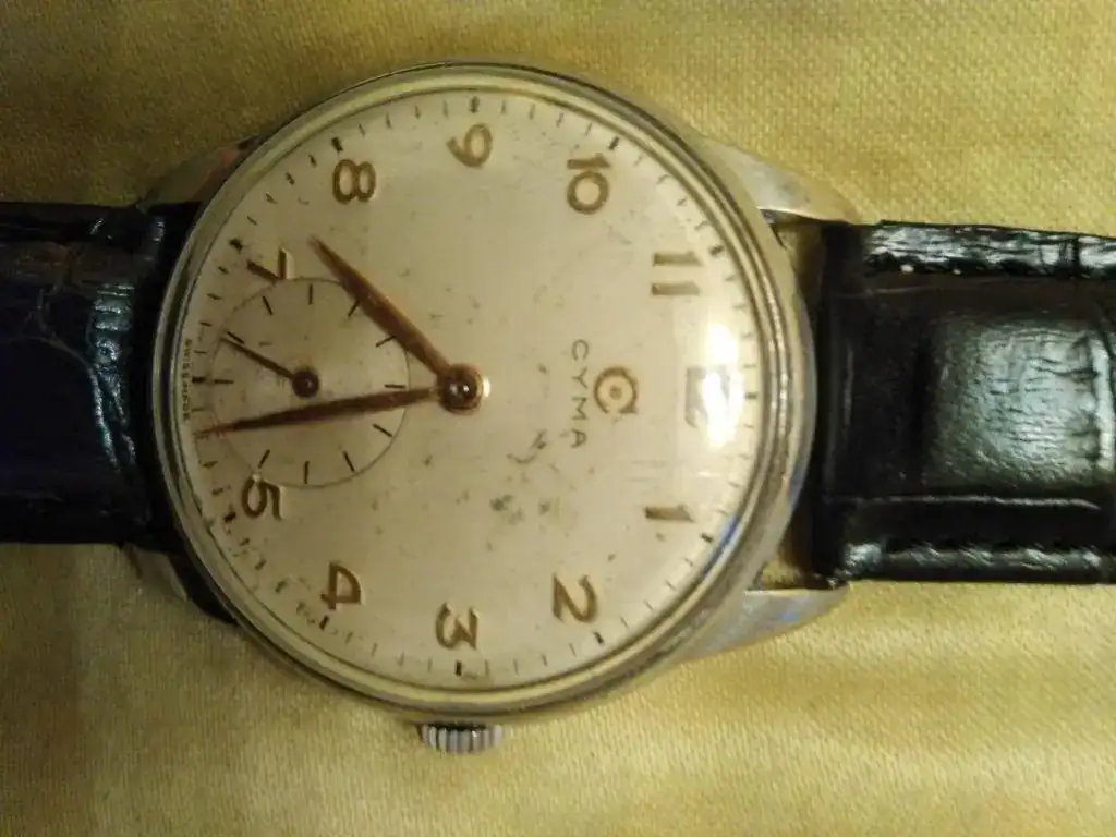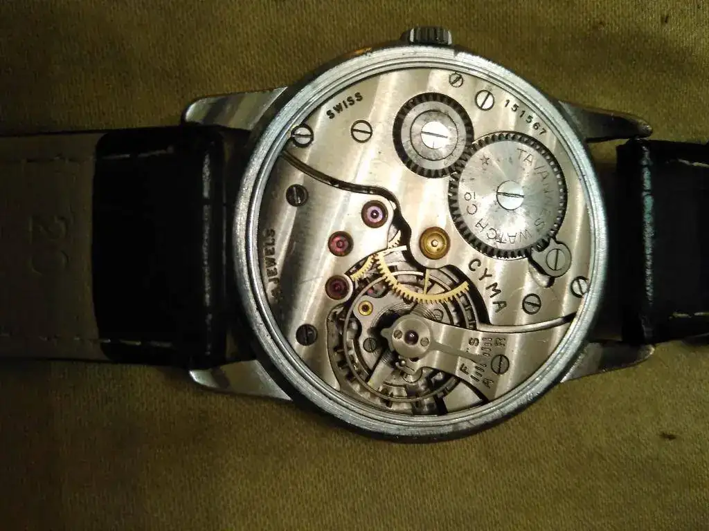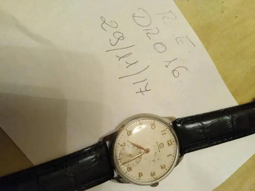 Ofrezco este reloj Cyma modelo 586 sin "K" (no tiene antichoque en el eje del volante).