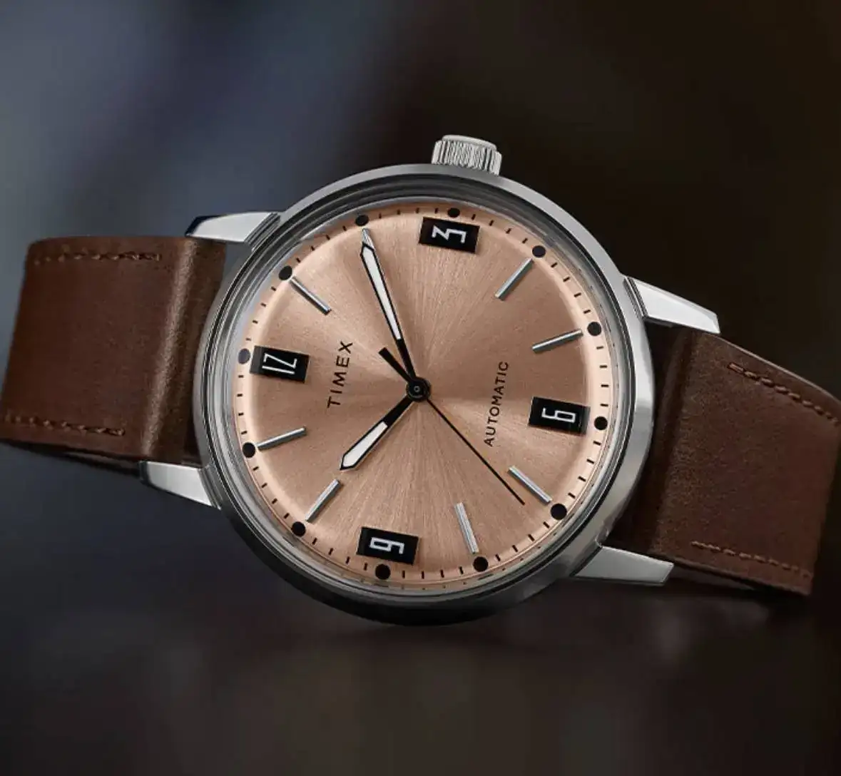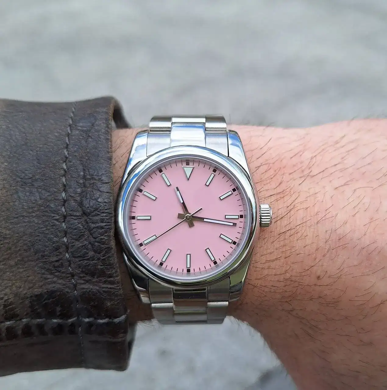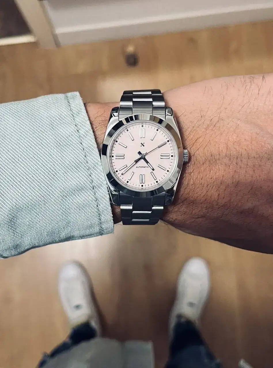 Reloj de acero con dial rosa 🩷