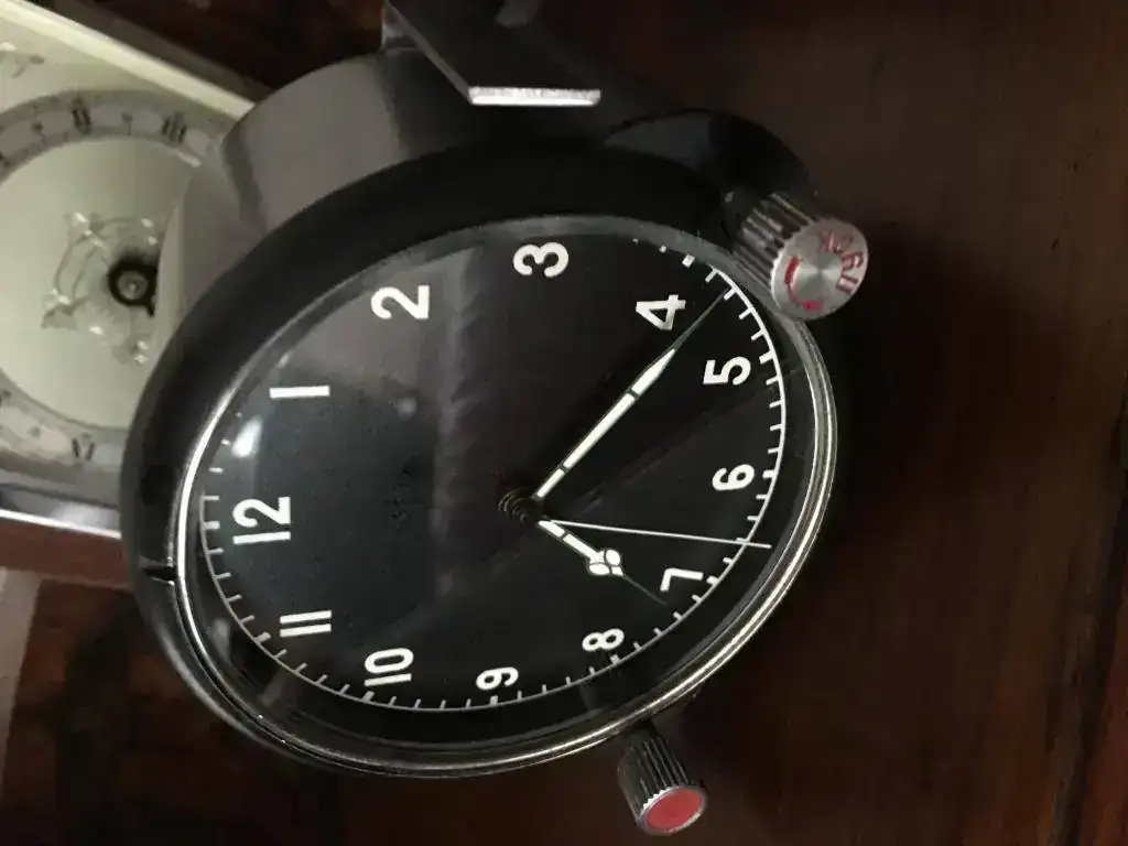 fabricado en la antigua Union Sovietica y utilizado en aviones y helicopteros militares, cuerda de 7 dias con parada de segundos, conexiones electricas para hacer funcionar una resistencia interior y evitar que se congele a temperaturas extremas, estado y funcionamiento excelente, nunca abierto con sus sellos intactos. relojes fabricados para el ejercito de calidad excepcional. 110€ con el envio incluido por mensajeria.