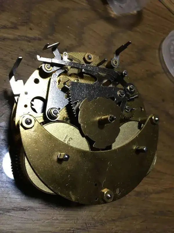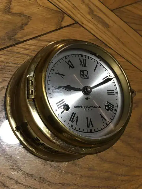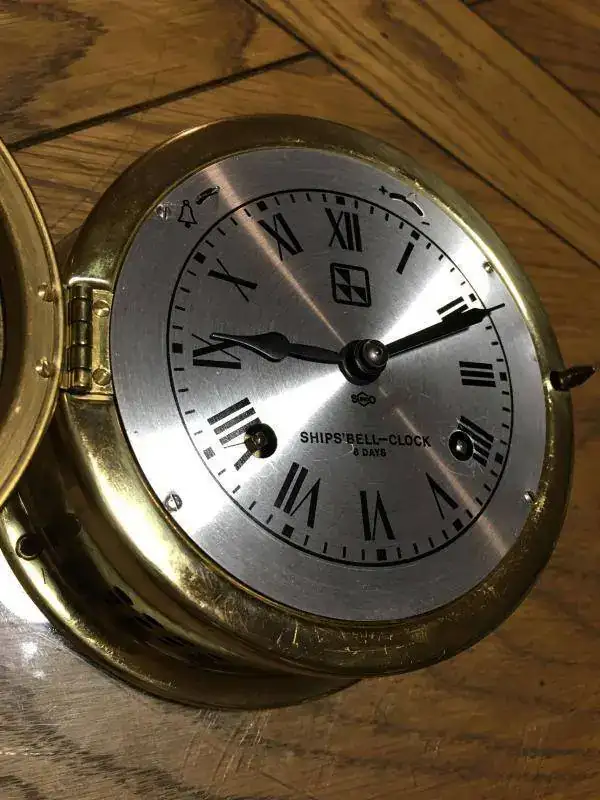 reloj fabricado en alemania en 1977, maquinaria mecanica de cuerda de 8 dias hermle con escape de plataforma y soneria marina de guardias de 4 horas, buen estado, los barriletes estan bien, la soneria funciona correctamente, pero el reloj no funciona o se para a los pocos minutos, se vende para reparar o piezas. 69€ con envio incluido en España peninsular por mensajeria.