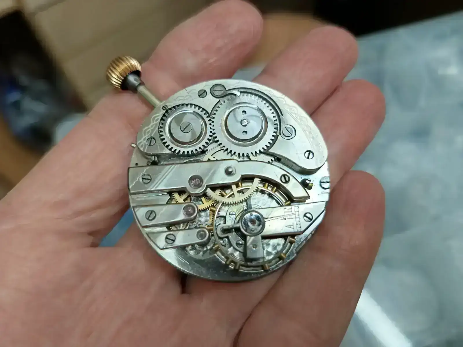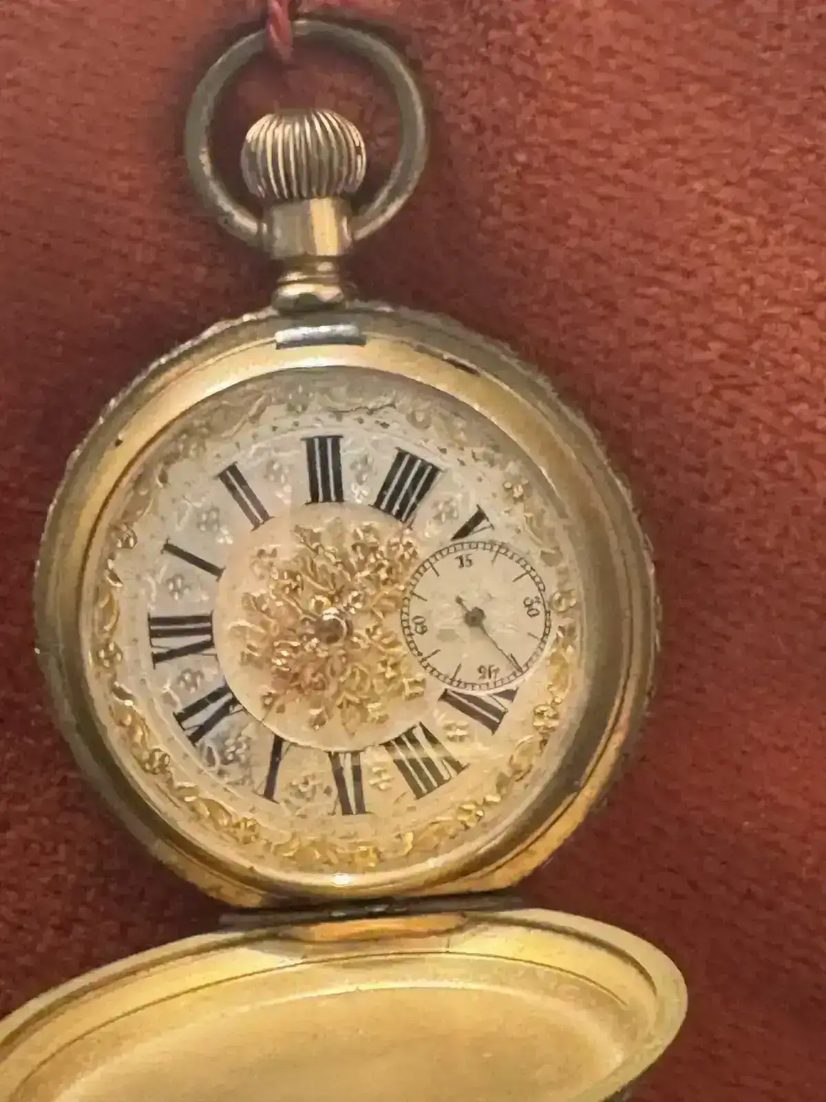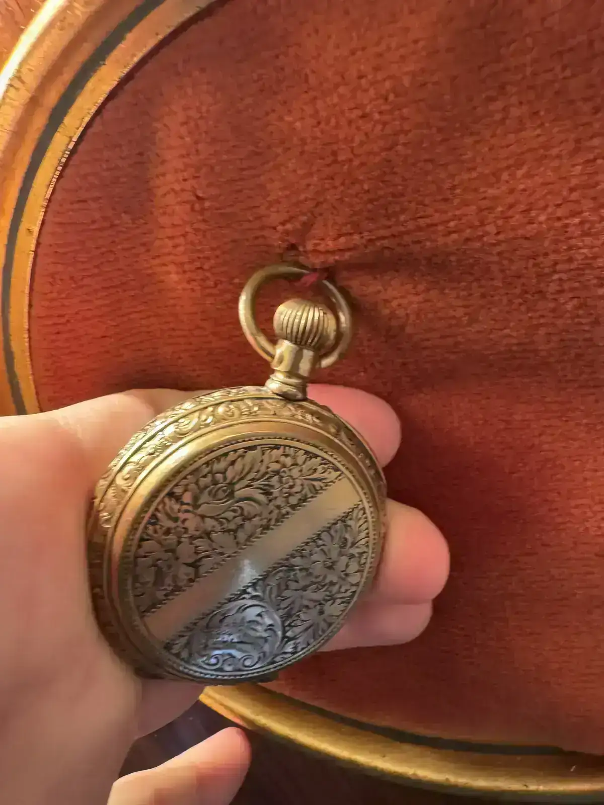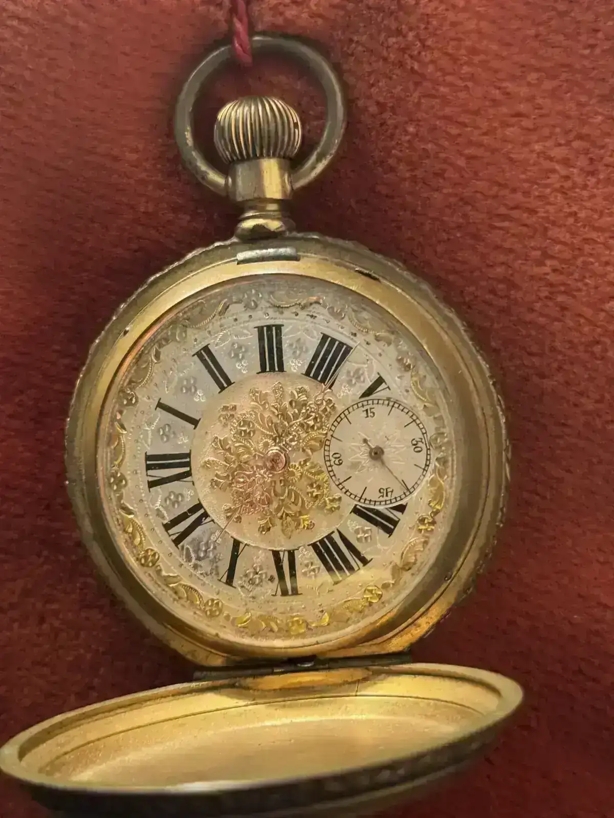 Buenas noches, primero disculparme por las fotos tan escasas, prometo conseguir mas y con detalle, necesito tomarme un rato para soltarlo del cuadro donde esta y abrirlo con tranquilidad, pero por adelantarme un poco, a ver si alguien podria tener alguna idea de que reloj se trata, aparte de estas como digo pobres fotos, lo único que puedo contar es que la maquinaria es 19 joyas y que tiene inscripciones en lo que creo es frances, ademas creo que era de mi tatarabuelo, por lo que el reloj tendría mas de 150 años fácil, aunque esto ultimo no lo puedo confirmar al 100%, juraria que mi abuelo en una ocasion me lo comento, pero no puedo asegurarlo.