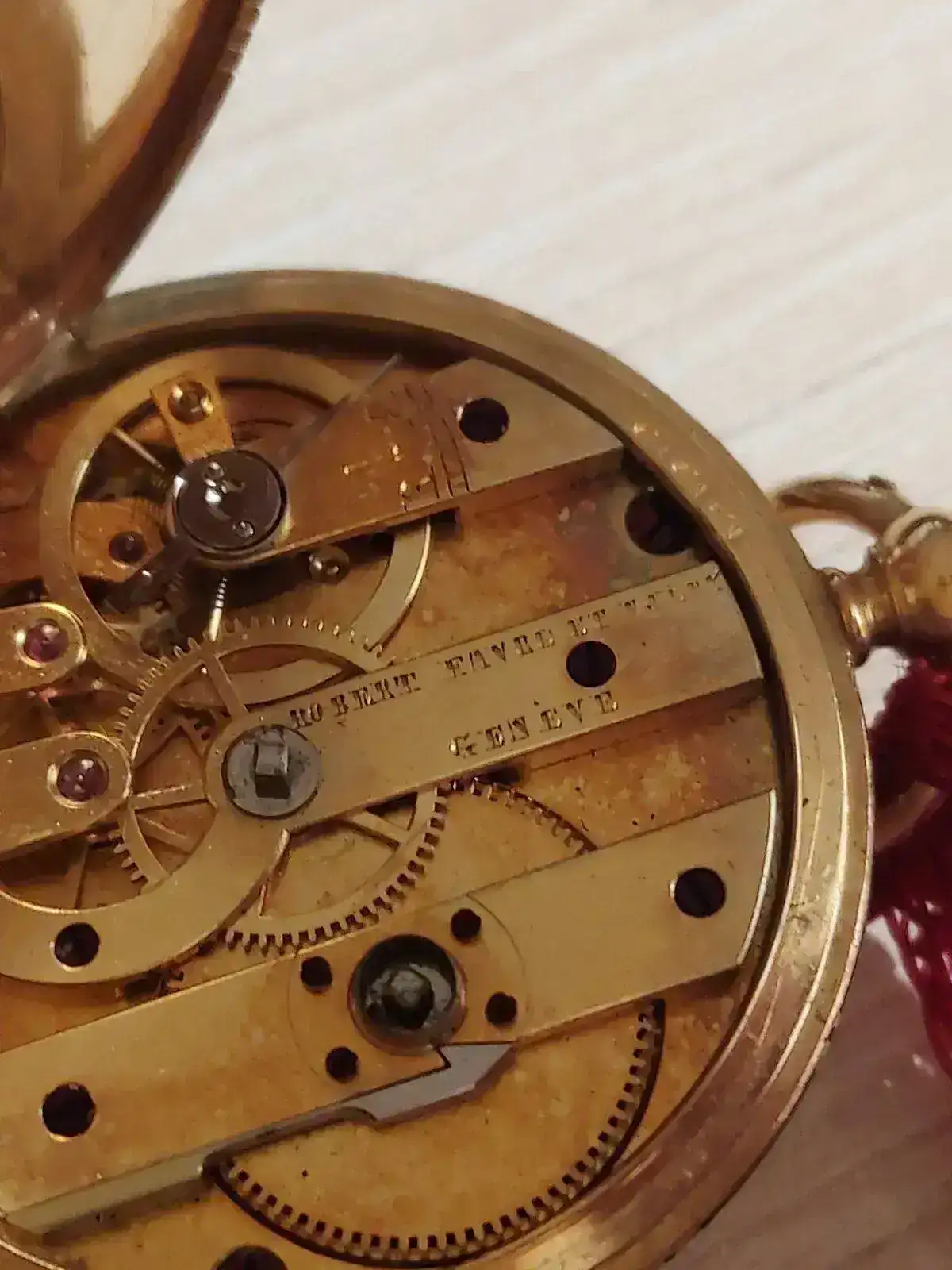 El movimiento es de escape de cylindro, normal para relojes de mujeres en aquellos anos, y llevan normalmente ocho rubies, mejor ponen en la cuvette ( segunda tapa dentro), HUIT RUBIS y ESCAPE CYLINDRE. Para mujeres no tomaban movimientos de escape ancora. En la Cuvette tambien dos agujeros para la llave, el aguero de centro es para poner la hora, el otro para dar cuerda.
