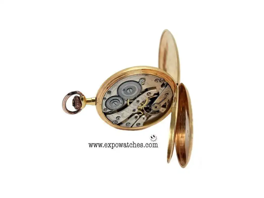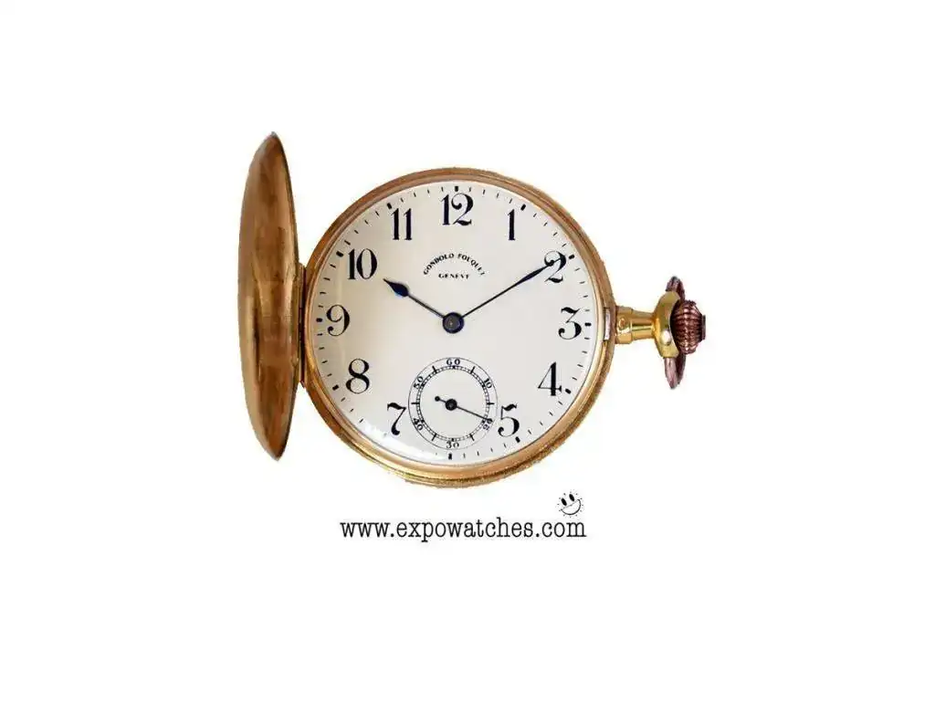 Se trata de un magnífico reloj de bolsillo suizo, de la marca Gondolo Fouquet, de tres tapas; todo el de oro de 18 quilates. El mecanismo es de cuerda manual y se encuentra en perfecto estado de funcionamiento.
