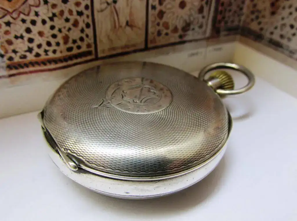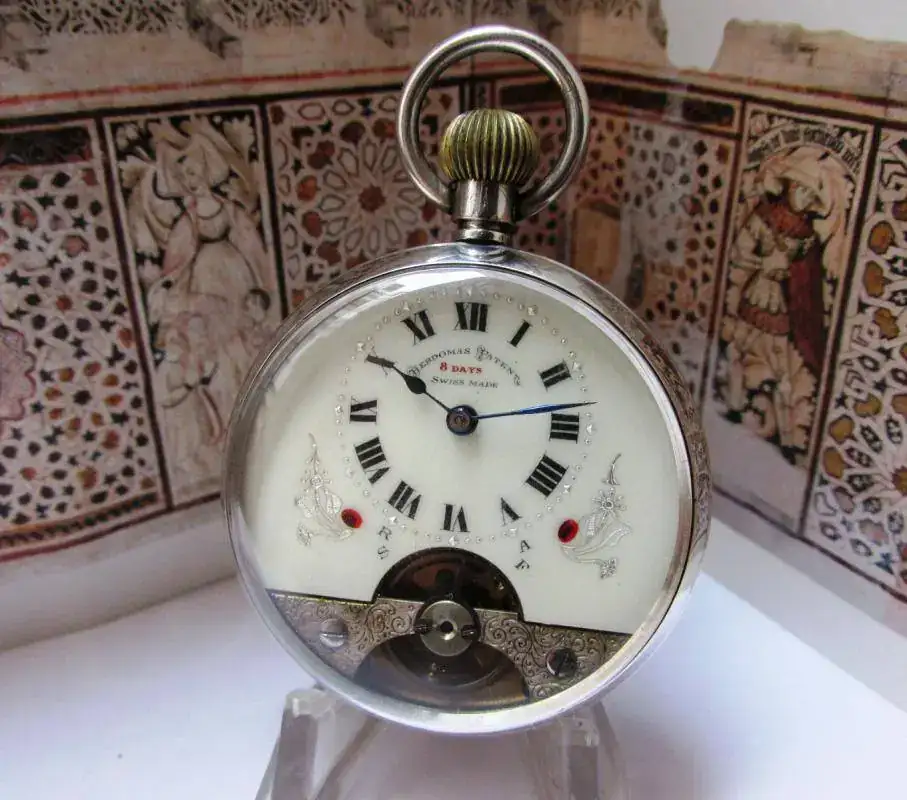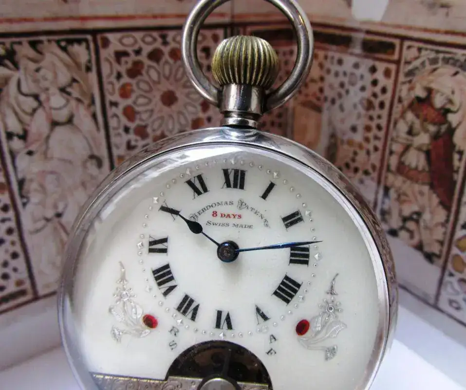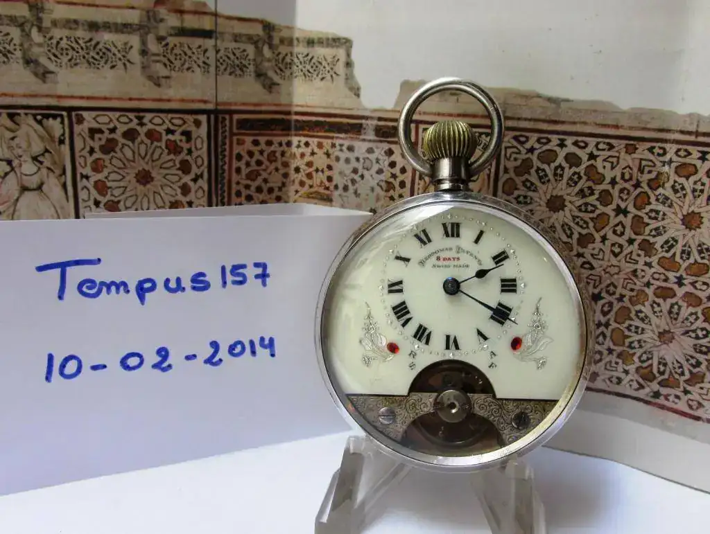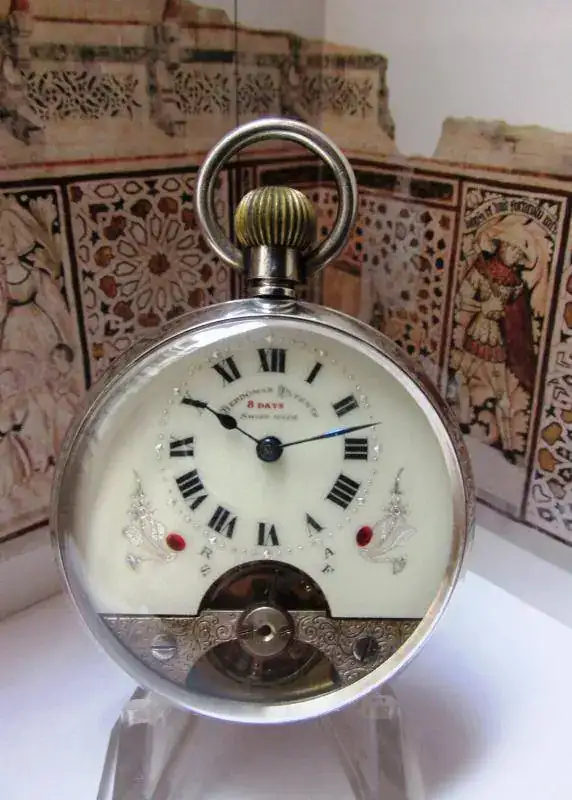Reloj de bolsillo Hebdomas de tipo 8 dias cuerda , caja de plata inglesa 0.925.