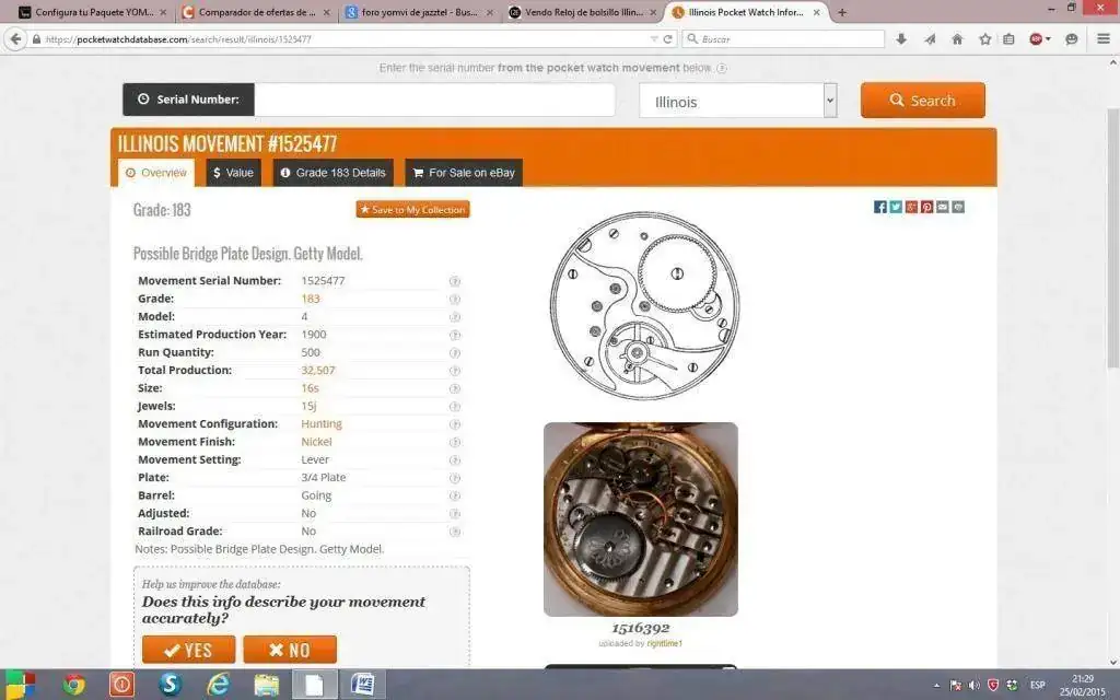 Se vende este precioso reloj que compré en Octubre al costo : 132 euros de subasta, 30 de portes y 50 de una limpieza y puesta apunto por un buen relojero.