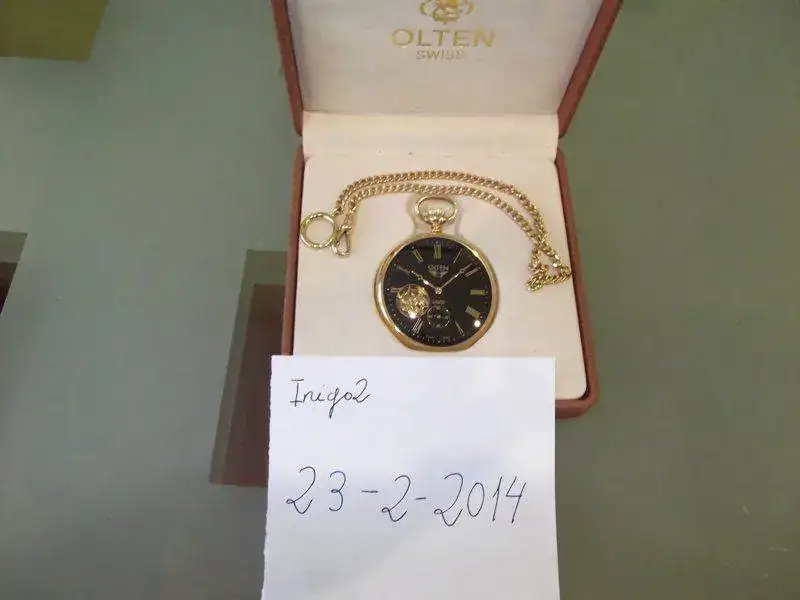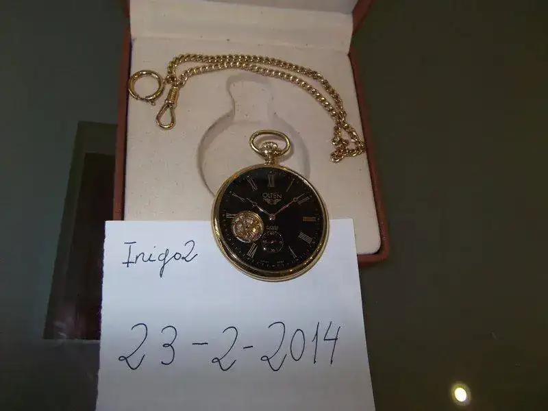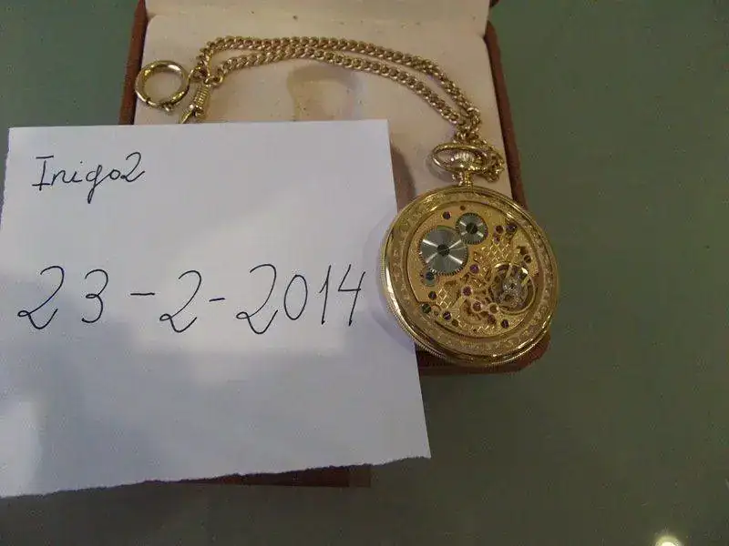 Este reloj de bolsillo me lo regalaron en el 2009, nunca lo he sacado a la calle, le he dado cuerda alguna vez, eso es todo, asi que se puede decir que esta totalmente nuevo, sin marcas ni microrrayas, se retrasa unos 2 segundos al dia, esta muy bien ajustado.