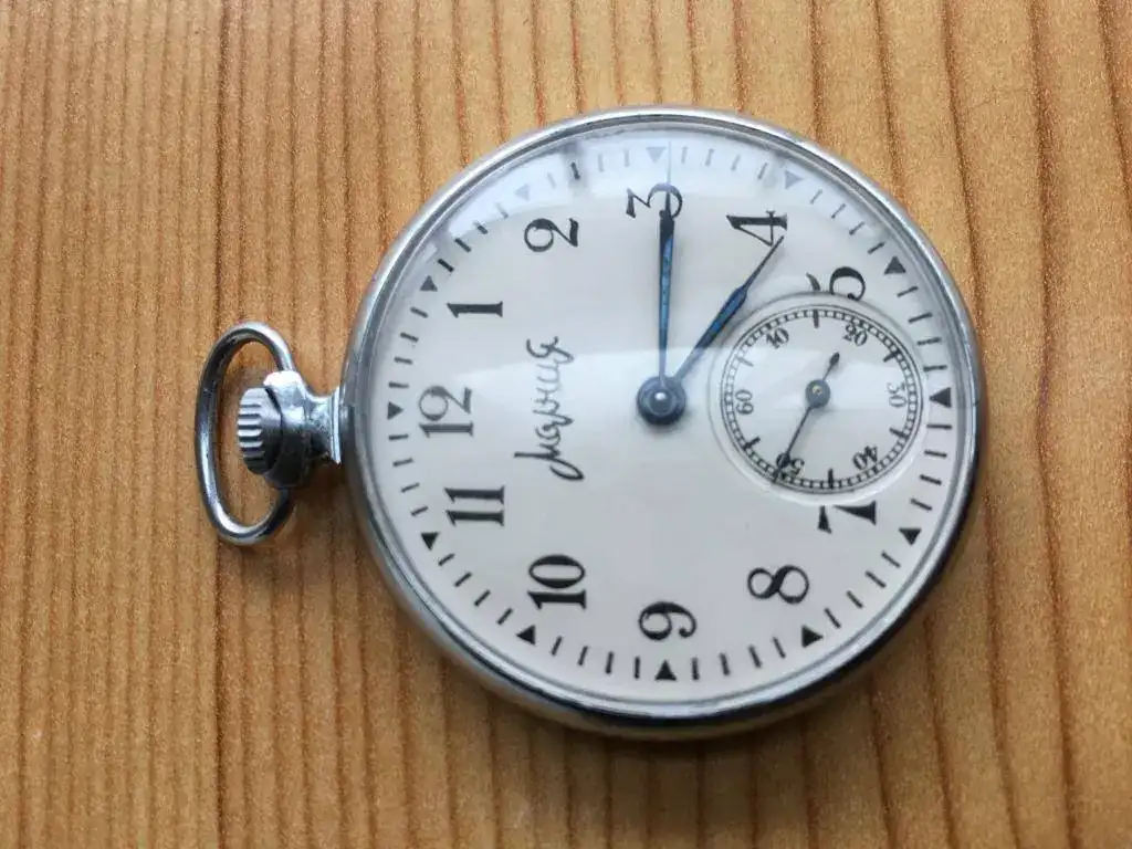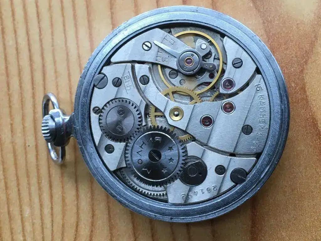 Reloj fabricado en la antigua Unión Soviética por Molnija en los años 50, maquinaria de cuerda con 15 rubíes. Mide 45mm de diámetro. Estado y funcionamiento excelente. 65€ con envio incluido por mensajeria.