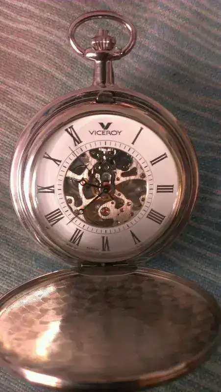 Hola compañeros, pongo a la venta este reloj de bolsillo viceroy completamente impecable, fue un regalo y jamas he llegado a usarle, es mecanico de calibre chino supongo y funciona perfectamente, el reloj ha estado guardado y solo se le quitaron los plasticos, no tiene rayas ni microrayas ni nada, ideal para un regalo, lleva su cadena de acero tb a estrenar.