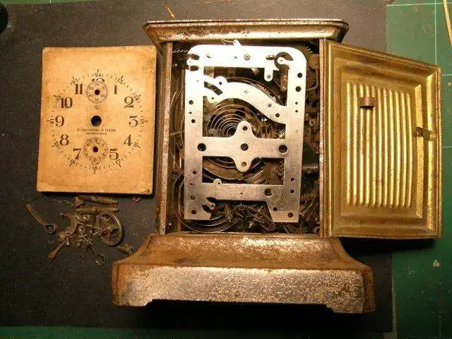 .Mi amigo relojero solo trabaja con este tipo de relojes ademas de los de pared, pie, torre, campanario y radiocontrolados y ya me dijo que el día que quiera me pase por su taller para montarlo. Si no soy capaz de hacerlo lo haré. Yo tengo uno exactamente igual, comprado en un mercadillo para ser rescatado, maquinaria marca HAU, con las dos flechas características y que está hecho un asco. Lo que llama Slim White, basurilla. En cuanto tenga un rato cuelgo la foto. Me dió pena y lo compré porque tienen una caja muy estilosa y en la esfera pone España. No estoy muy segura de si es reloj de carruaje o de mesa de oficina, quizás algún experto pueda concretarlo más. No puedo ayudarte con la máquina porque mi afición es más de carrillones, pero busca por despertadores y quizás en algo te ayude. El mío no tiene salvación salvo para un experto con muchos repuestos y conocimientos, así que he pintado la caja con pintura cromo plata para darle otra vida...