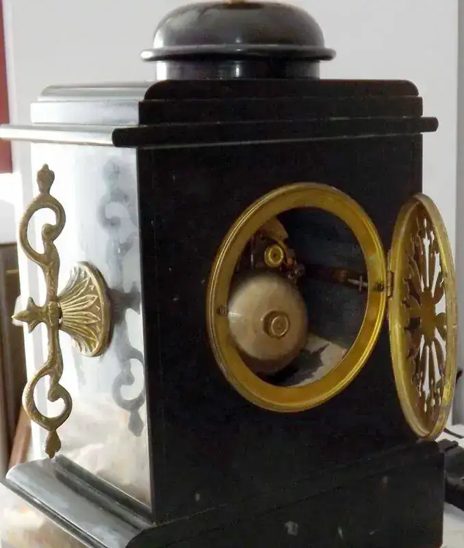 Vendo reloj de chimenea en mármol estilo Napoleón. Se puede datar en el último cuarto del siglo XIX, ca. 1875.