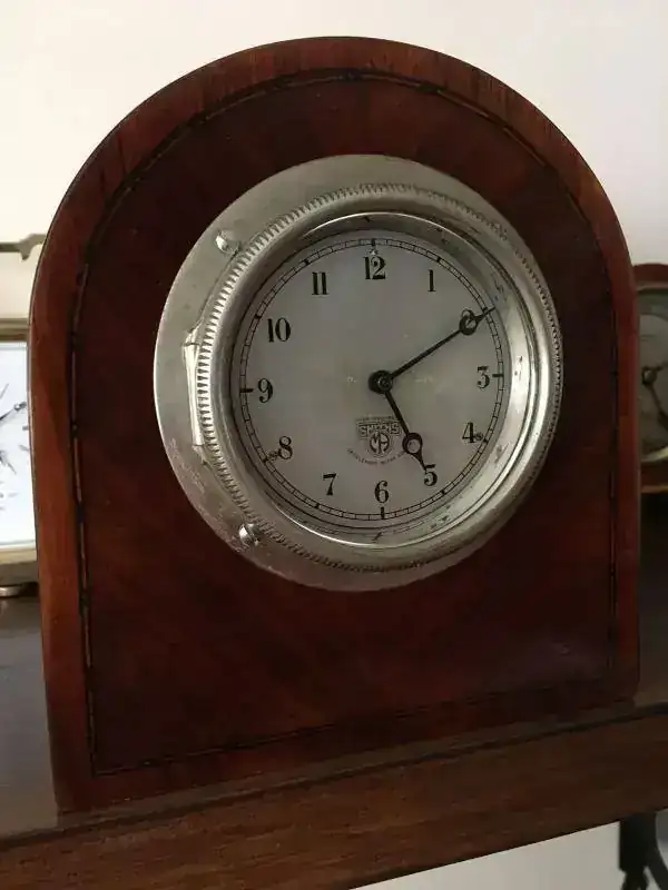 Fabricado en los años 20 por Smiths y montado en los mejores coches de la epoca. maquinaria mecanica de cuerda de 8 dias con escape de plataforma, montado en un soporte de madera maciza de caoba. funciona perfectamente. mide 18x16cm. 125€ con envio incluido por mensajeria.
