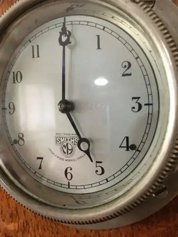 Fabricado en los años 30 por Smiths y montado en los mejores coches de la epoca. maquinaria mecanica de cuerda de 8 dias con escape de plataforma, montado en un soporte de madera. funciona perfectamente. mide 31x18.5cm. 135€ con envio incluido por mensajeria.