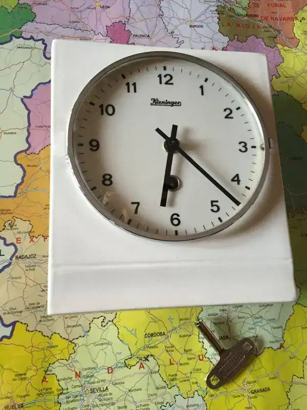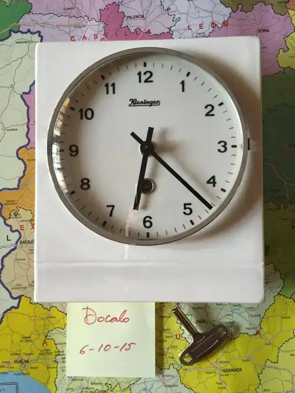 Reloj de cocina fabricado en Alemania en 1967 en ceramica blanca y puerta de cristal, maquinaria mecanica de cuerda de 8 dias, estado y funcionamiento excelente. 75€ con el envio incluido por nacex 24h. saludos.
