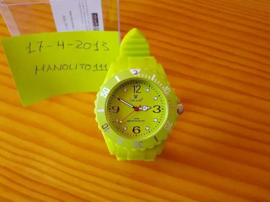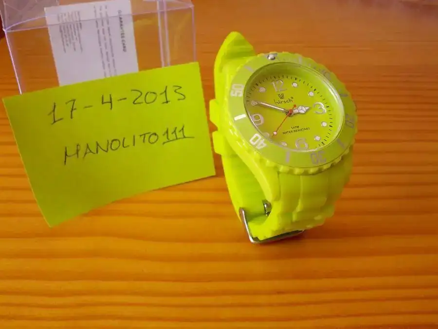 Hola amigos,vendo este reloj Hirsch de cuarzo por 5 euros.Mide 42 mm,correa de caucho y es fabricado en Austria.Entrego con caja y papeles.Envío por cuenta del comprador pero preferiblemente entrega en mano en Madrid.