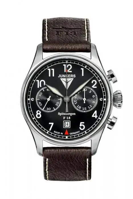 - black dial with white, in the dark blue shining luminous digits / indices SuperLuminova and silver colored Junkers apply