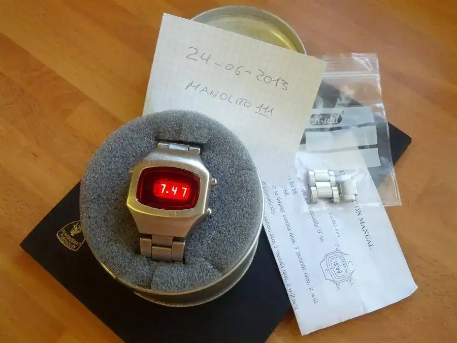 Hola amigos,vendo este estupendo reloj de leds vintage por 40 euros.Solo tiene dos puestas por lo que su estado es excelente.La pila está nueva y entrego el reloj con dotación completa.Su tamaño es de 40 mm por 38mm de ancho sin pulsadores.