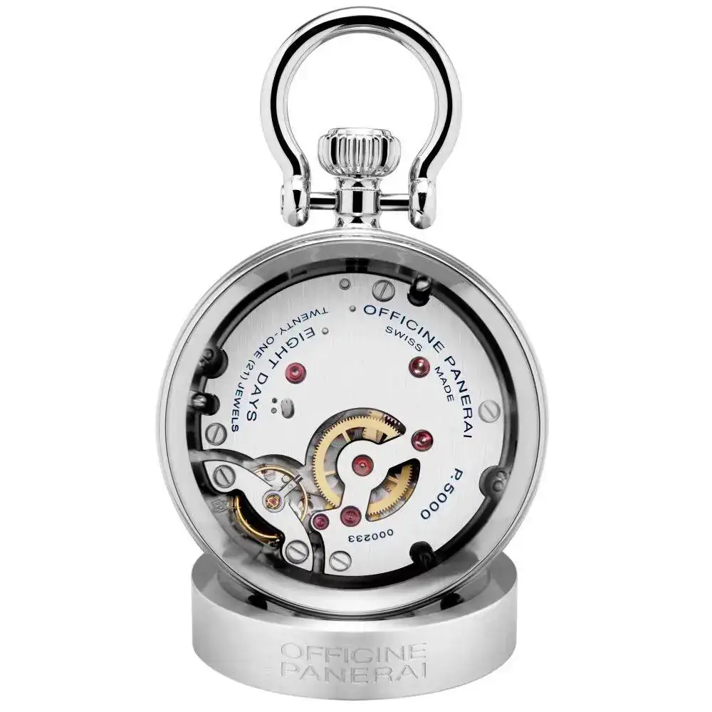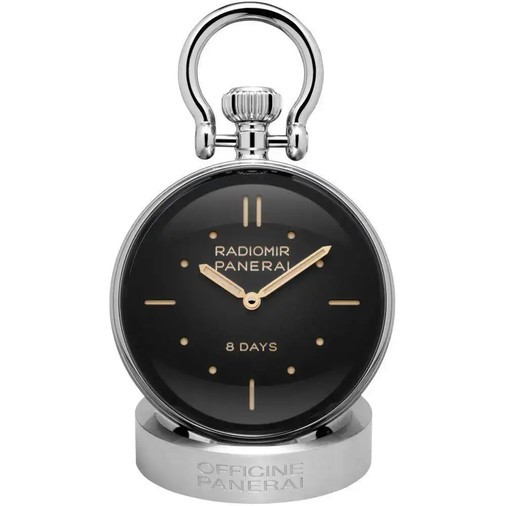 Ahora ando pensando en comprar algo pequeño y discreto para poner en la mesa de trabajo de mi despacho. Tras buscar propuestas originales me he encontrado con esto, una versión de mesa de un Panerai con reserva de 8 días. Con un diametro de 65mn y acabados en acero pulido la verdad que me ha enamorado, el precio algo alto, son €2,900.