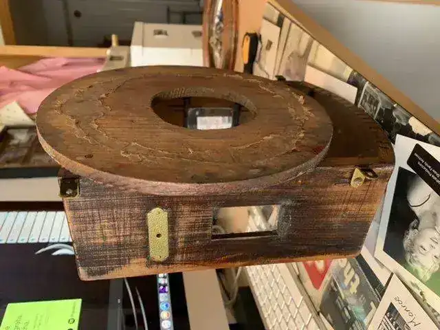 Parece que la aguja horaria está un poco desfasada (Reloj con caja de madera).