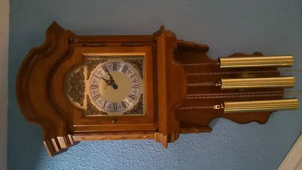 reloj de pared aleman hermle Westminster carrillón. 8 días cuerda por pesas al aire. 5 martillos, soneria en todos los cuartos y en las horas con la melodia westminster, palanca para desconectar la soneria. fabricado en madera de roble maciza en su totalidad, mide 88x34cm. estado excelente con algunas señales del paso del tiempo sin importancia. funcionamiento perfecto. 295€ y gastos de envio segun preferencia.