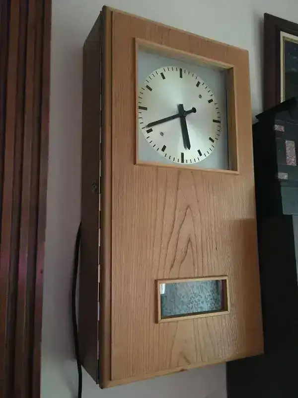 Fabricado en Alemania en los años 60, maquinaria mecanica de carga electrica con reserva de marcha para fallos electricos, funciona a 220v. caja en madera maciza de roble. Estado y funcionamiento excelente. Mide 64x35cm. 199€, envio por mensajeria 15€