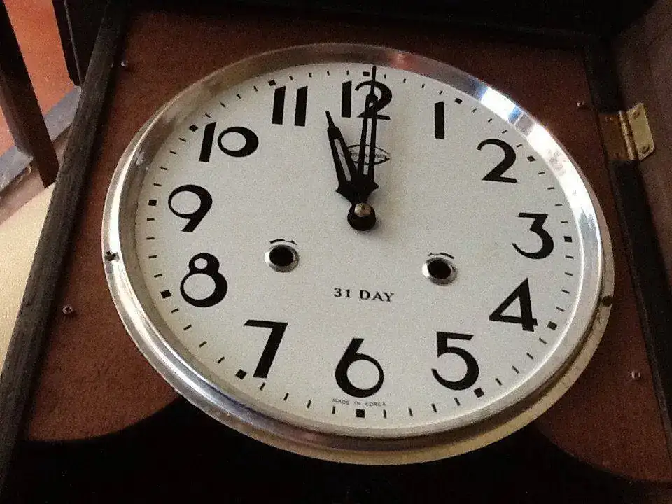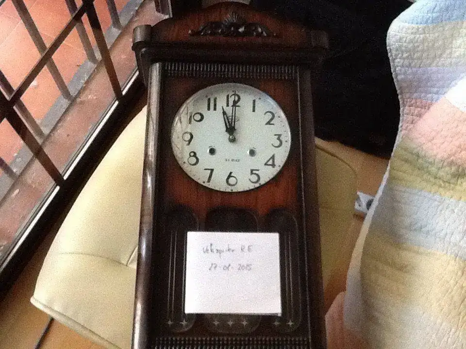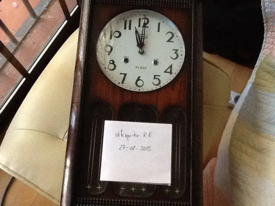 Pues antes de que termine en el olvido saco este reloj de pared de hace unos 30-35 años, de la marca three star, 31 días, 73 cm de largo. El estado estético es bueno, y eso apesar de las pésimas fotos