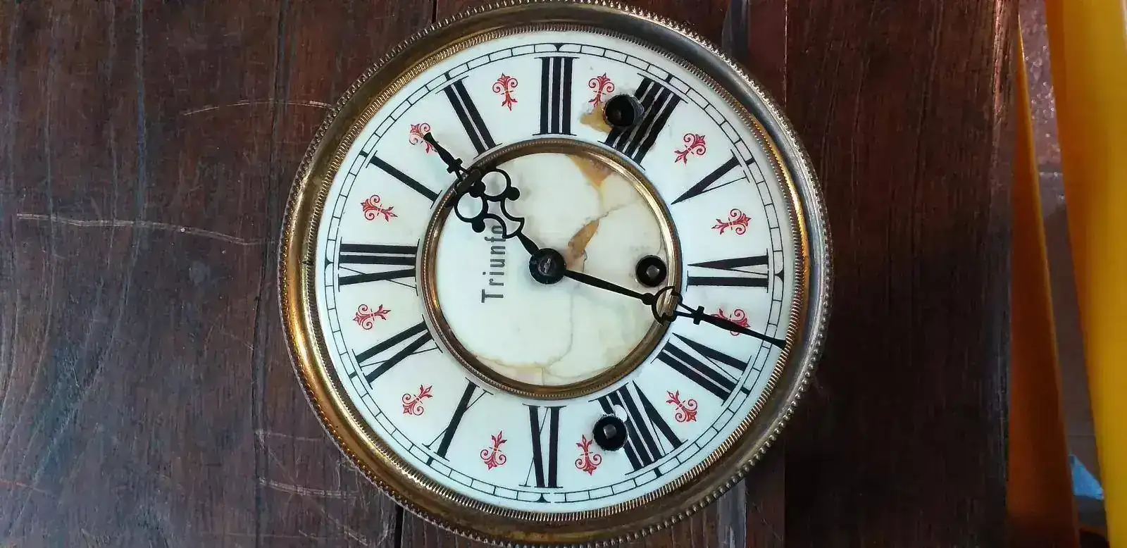 Estimados amigos les cuento que llego a mis manos este reloj de pared marca TRIUNFO, por supuesto no funciona.