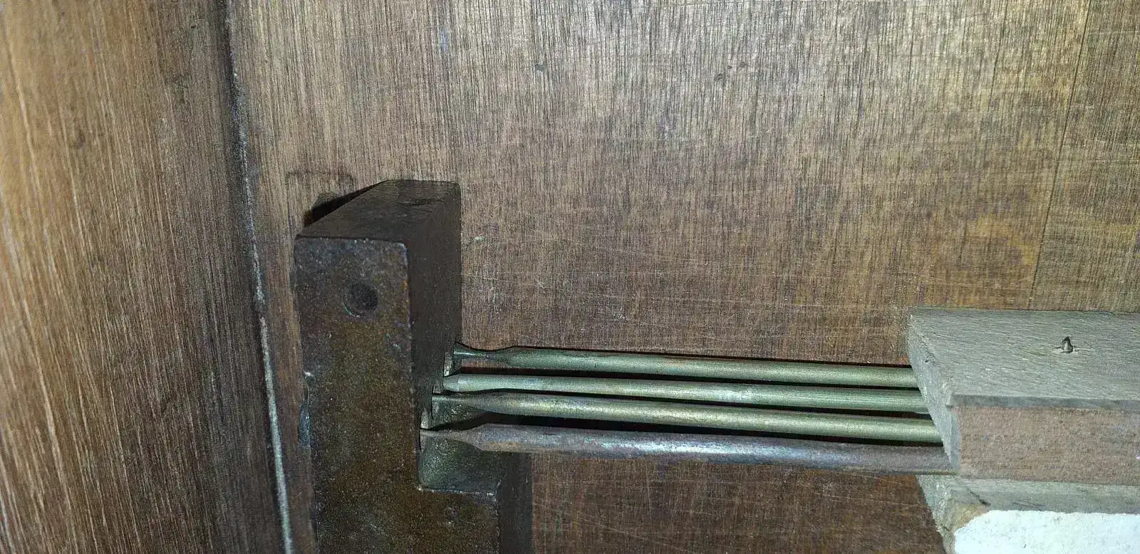 Una de las cuerdas esta zafada y las otras 2 están al tope, al hacer girar la aguja de los minutos no actúa la sonería?, tiene un alambre que sujeta juntos los martillos???, las varillas tienen un soporte inferior esto es original?, este reloj debería hacer alguna melodía en especial?.