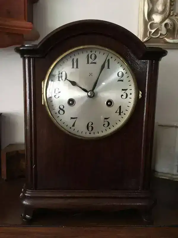Reloj fabricado en Alemania a principios del siglo XX por la prestigiosa Hac, que en los años 20 se fusionaria con Junghans, maquinaria mecánica de cuerda de 8 días con escape por pendulo y soneria sobre espiral. Estado excelente y funcionamiento perfecto. Mide 32.5x23cm. Reloj revisado, maquinaria limpia y aceitada. 150€ con envio incluido por mensajeria.