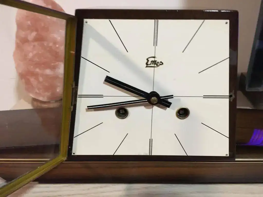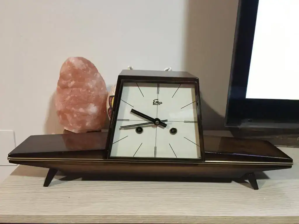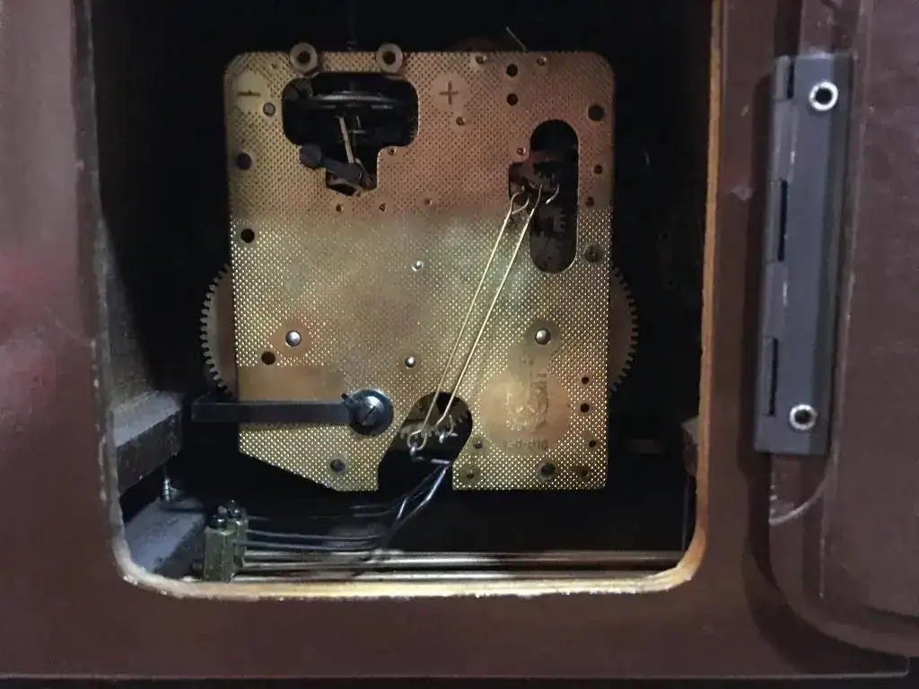 Reloj fabricado en Alemania en 1963, maquinaria mecánica Hermle de cuerda de 8 días con escape flotante y soneria sobre varillas. Estado bueno con marcas y roces del uso, funcionamiento perfecto. Mide 50x20cm. Reloj revisado, maquinaria limpia y aceitada. 95€ envio incluido por mensajeria.