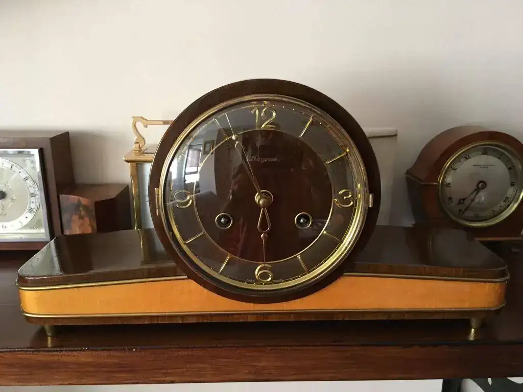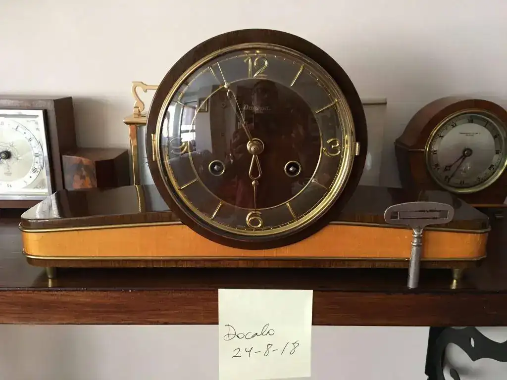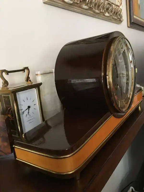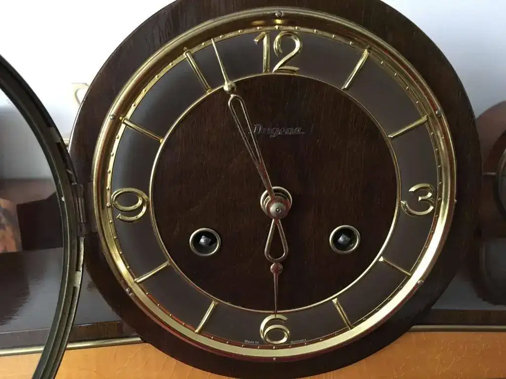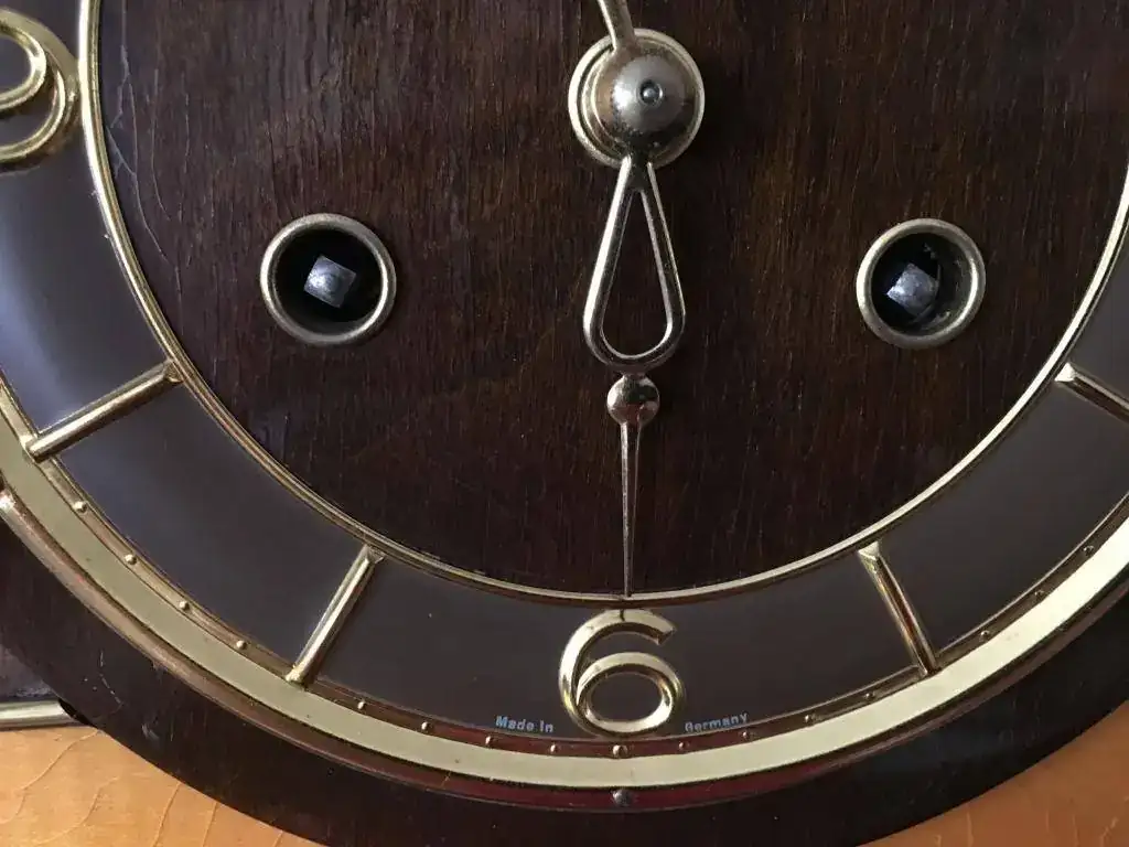 Reloj fabricado en Alemania a finales de los años 50 por Dugena, maquinaria mecánica Hermle de cuerda de 8 días con escape flotante y soneria sobre varillas. Estado excelente y funcionamiento perfecto. Mide 38x20cm. Reloj revisado, maquinaria limpia y aceitada. 110€ envio incluido por mensajeria.