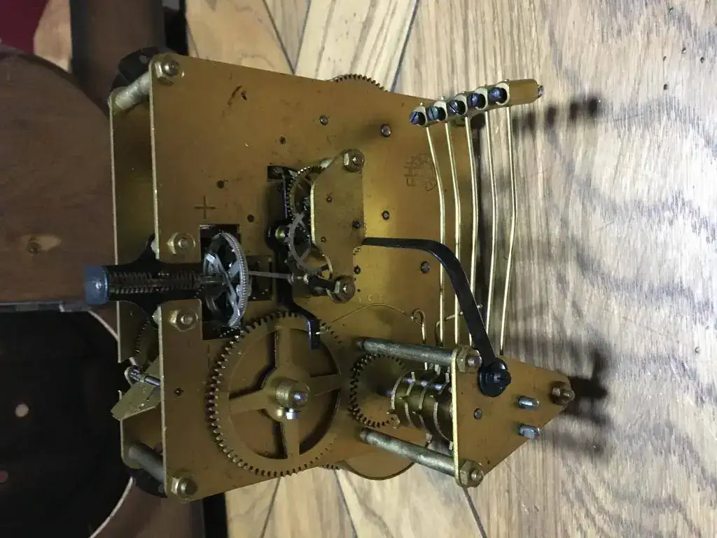 Impresionante reloj fabricado en Alemania en los años 50, maquinaria mecánica Hermle de cuerda de 8 días con escape flotante y soneria carrillon westmister sobre varillas. Estado excelente y funcionamiento perfecto. Mide 66x23cm, es muy grande. Reloj revisado, maquinaria limpia y aceitada. 145€ envio incluido por mensajeria.