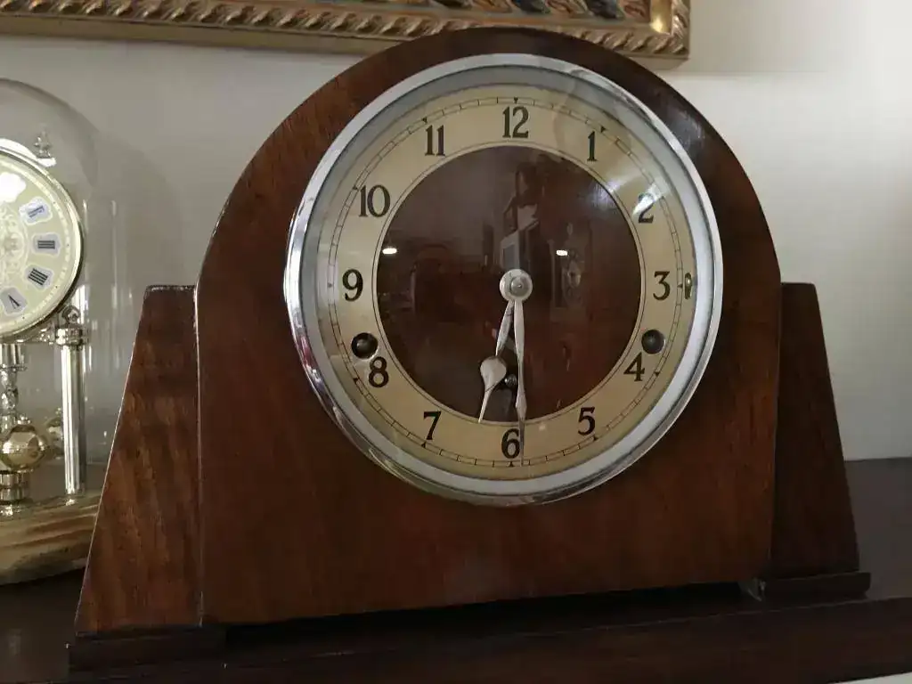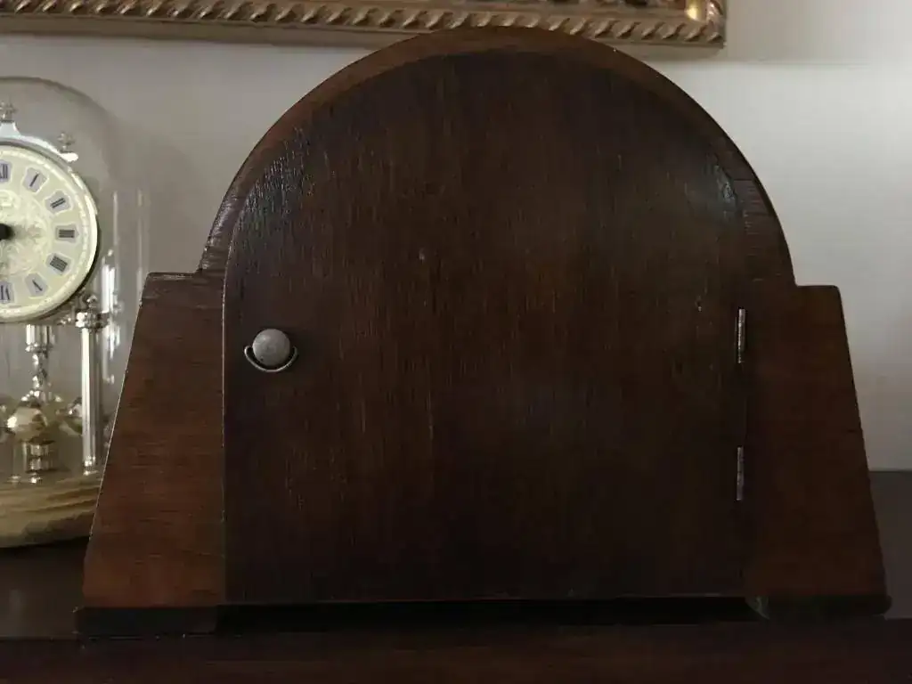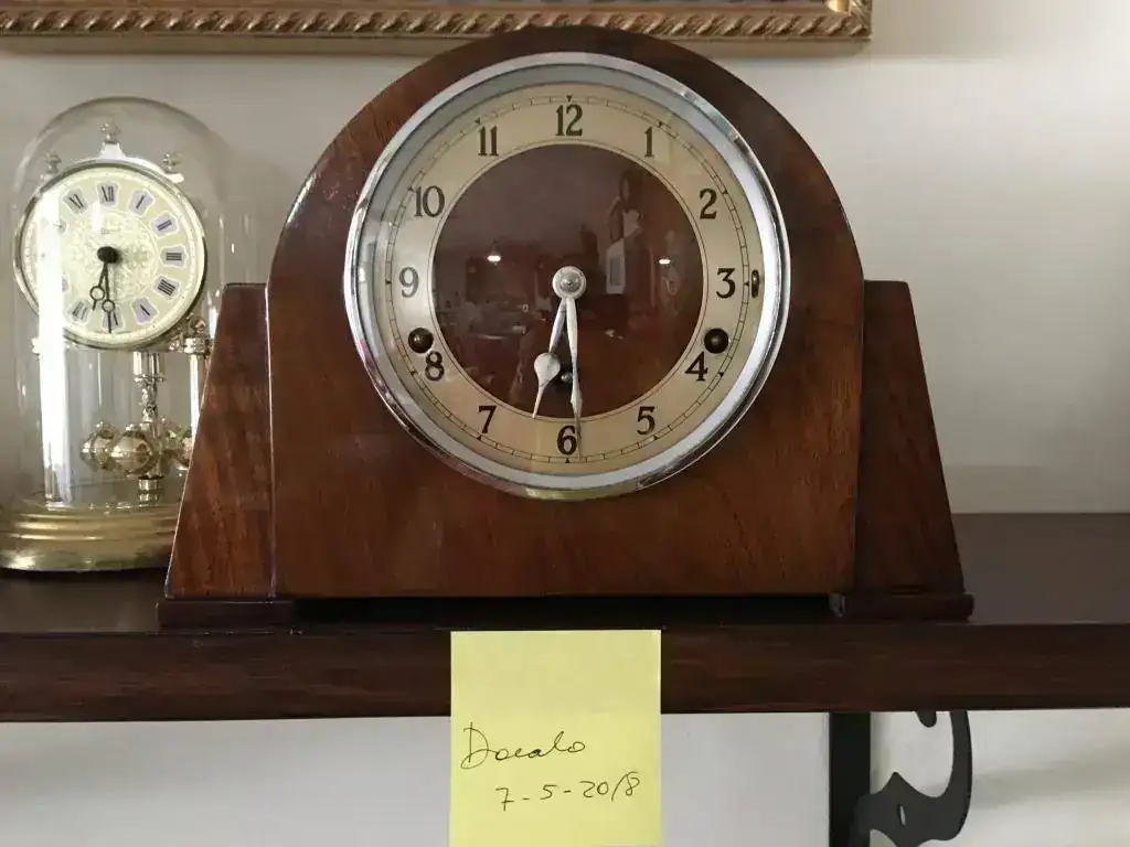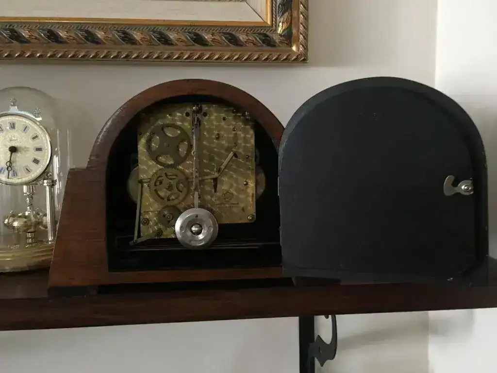 Reloj fabricado en Reino Unido en los años 40 por la prestigiosa Garrard, maquinaria mecánica de cuerda de 8 días con escape por pendulo y soneria carrillon westminster, pletinas pulidas y decoradas, pendulo cromado. Estado excelente, funcionamiento perfecto . Mide 23x21cm. Reloj revisado, maquinaria limpia y aceitada. 150€