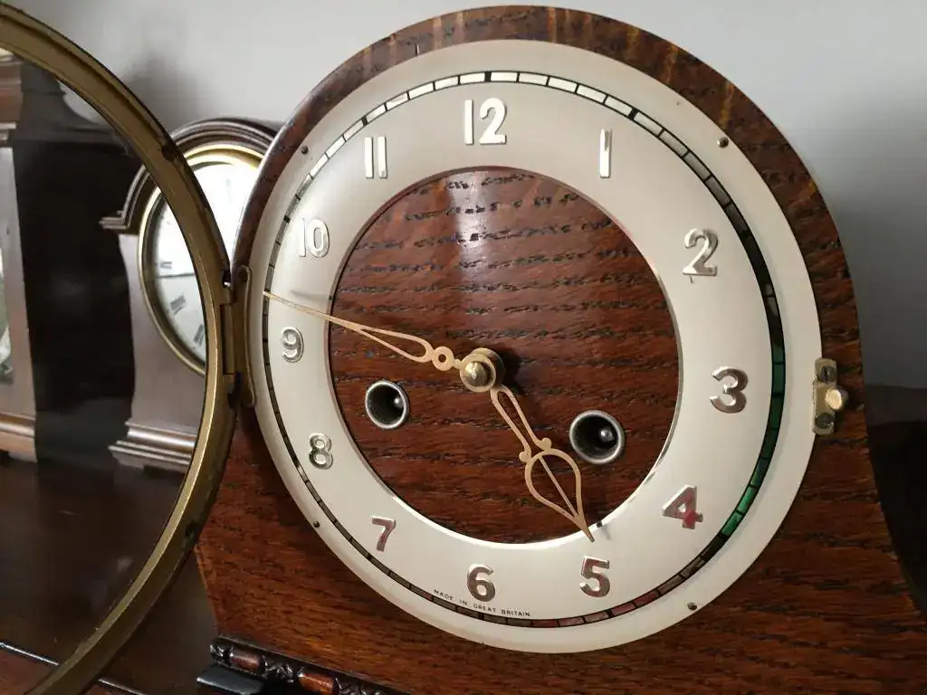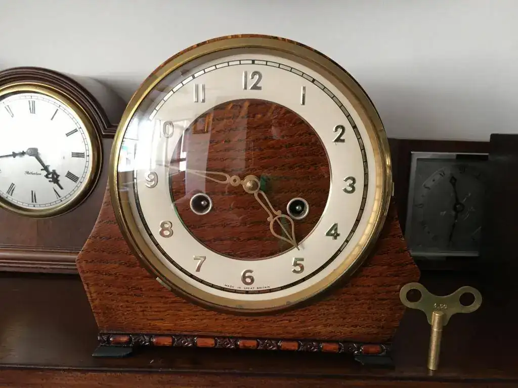 Fabricado en Reino Unido por Smiths en los años 50 y se conserva como si fuese ayer, maquinaria mecanica de cuerda de 8 dias con soneria sobre espiral en horas y medias, mueble en madera de roble, mide 20x19cm. maquinaria revisada, limpia y aceitada. 110€ con envio incluido por mensajeria.