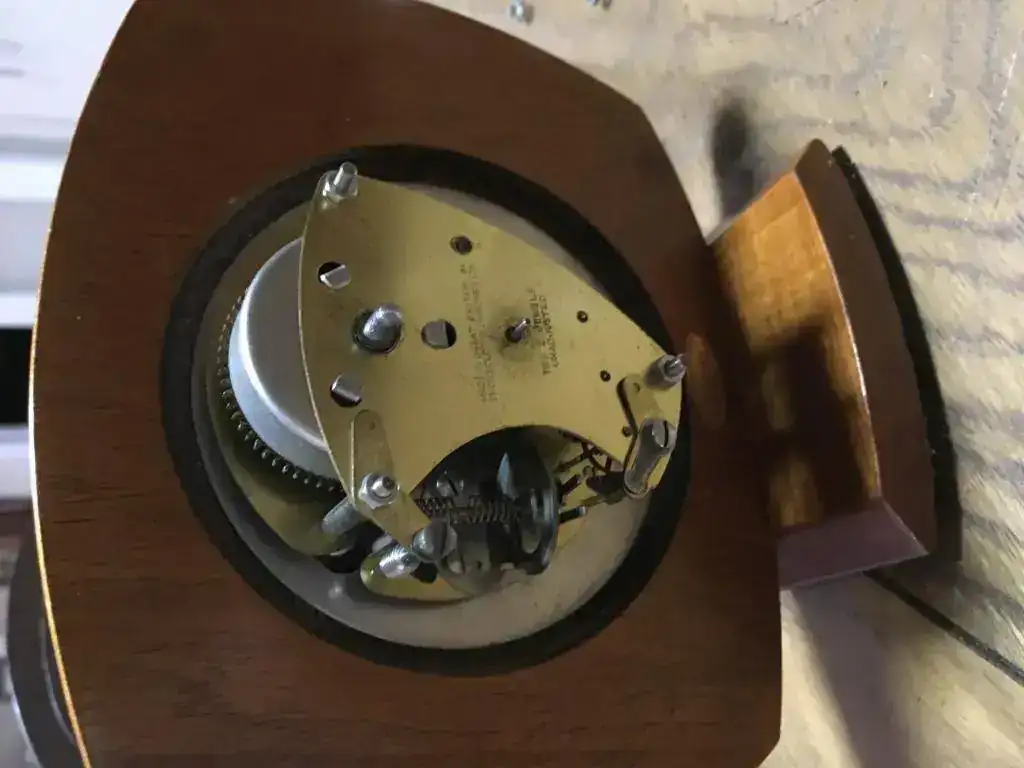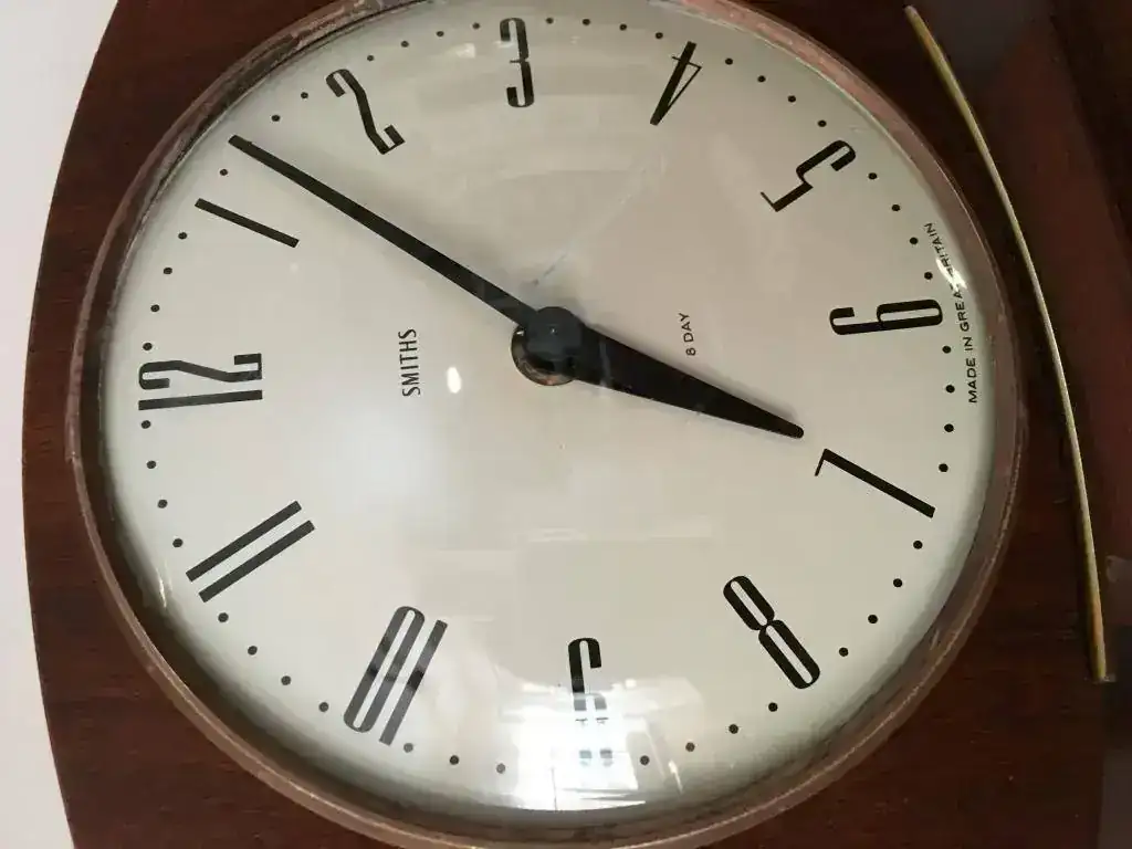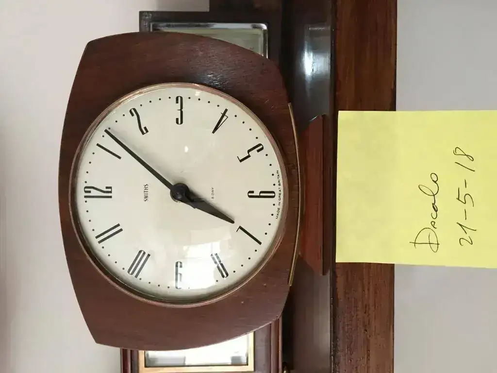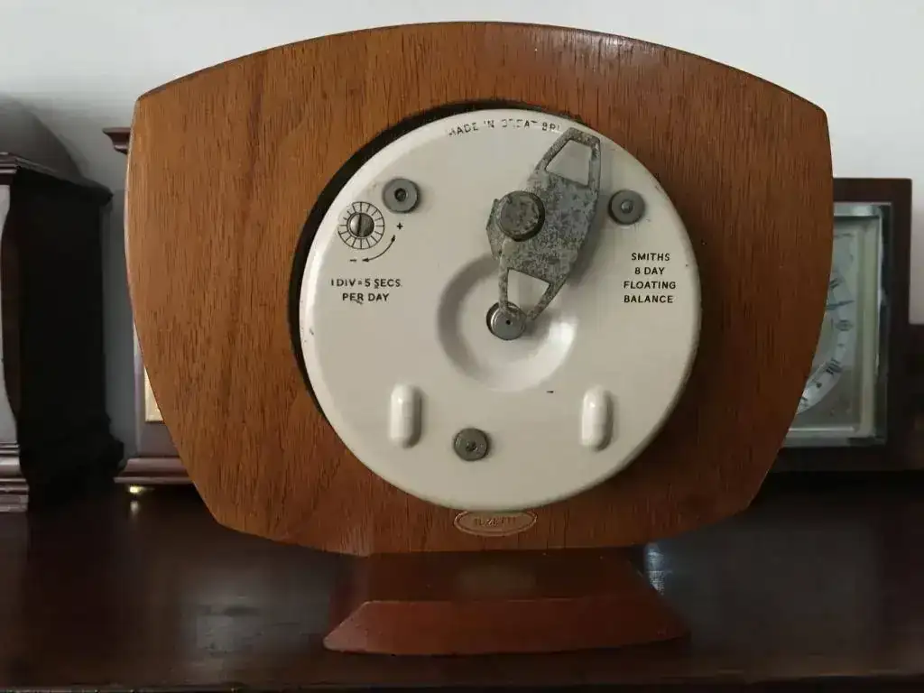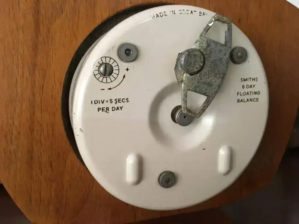 Fabricado en Reino Unido en los años 70, maquinaria mecanica de cuerda de 8 dias con escape de volante flotante, mide 18X14cm. estado y funcionamiento excelente. maquinaria limpia y aceitada. 65€ envio incluido por mensajeria