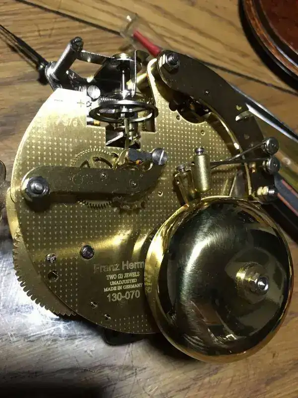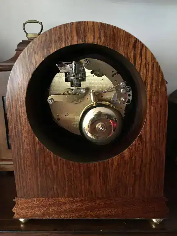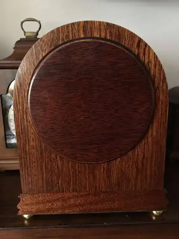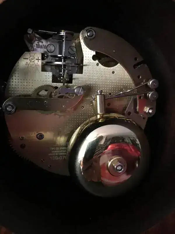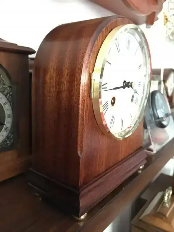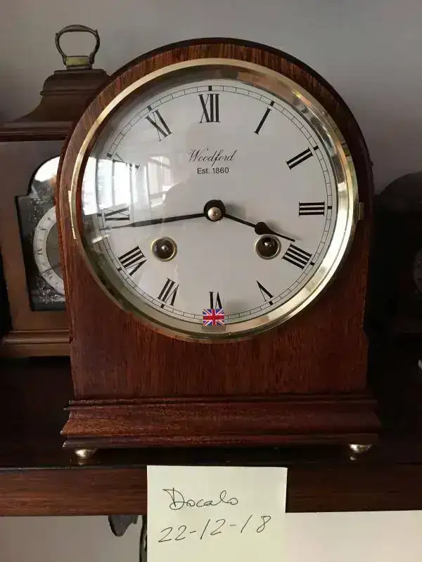 Reloj fabricado en Reino Unido en 1999, aun conserva la etiqueta de la bandera en el cristal, maquinaria mecánica de cuerda de 8 días alemana Hermle, con escape flotante de ultima generacion y soneria sobre dos campanas, sonido muy suave. Estado excelente, diria NOS y funcionamiento perfecto. mueble en madera maciza de caoba. Mide 17x21cm, maquinaria limpia y aceitada. 150€ envio incluido por mensajeria.